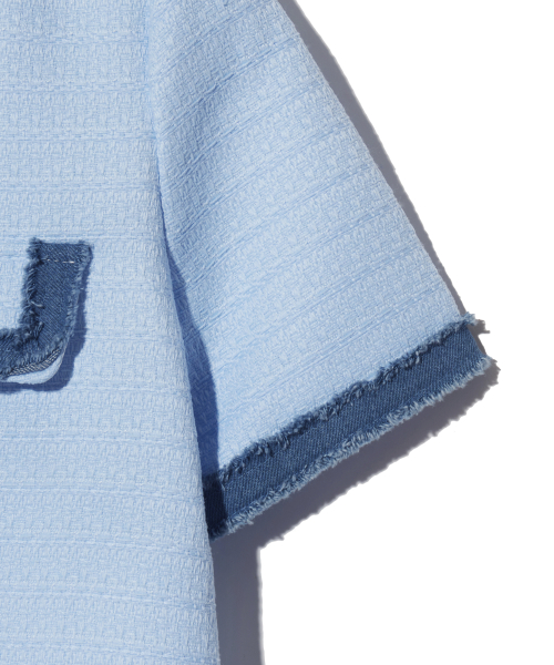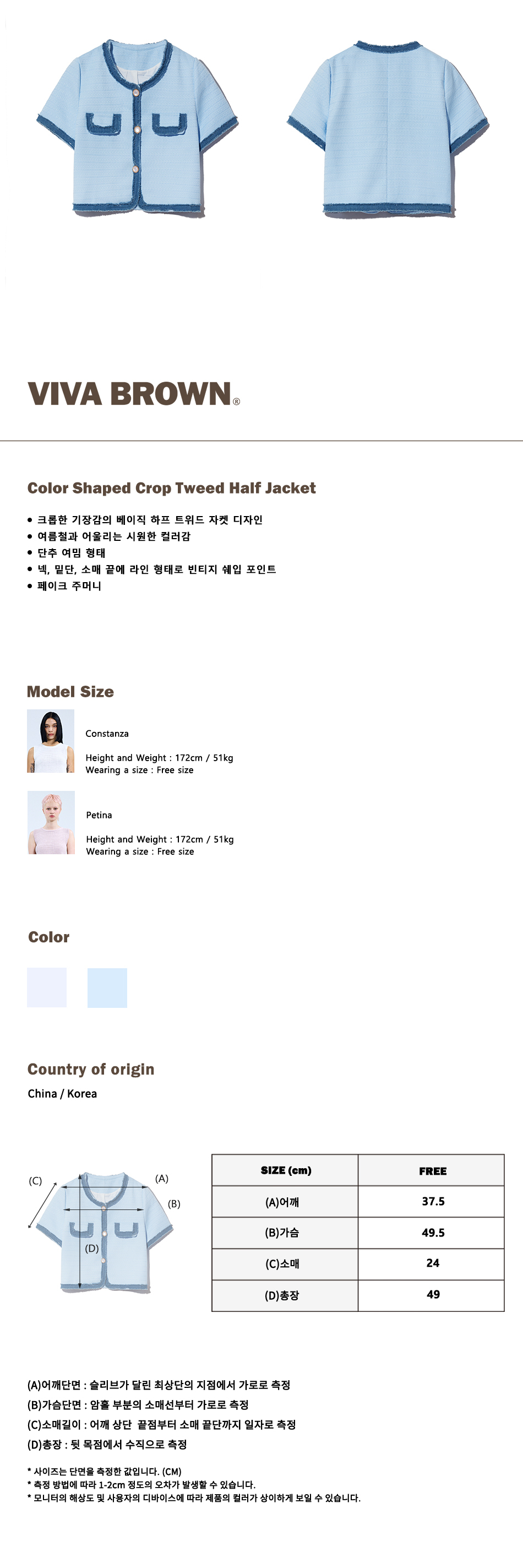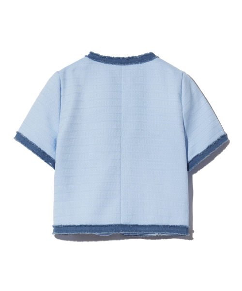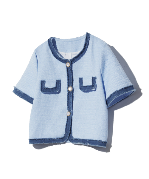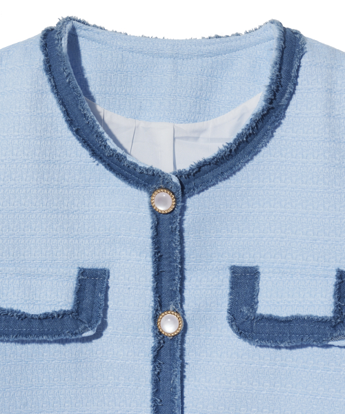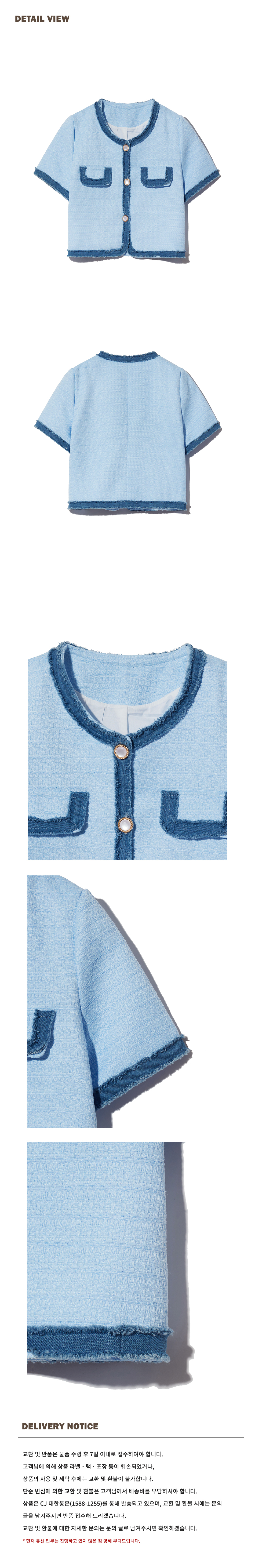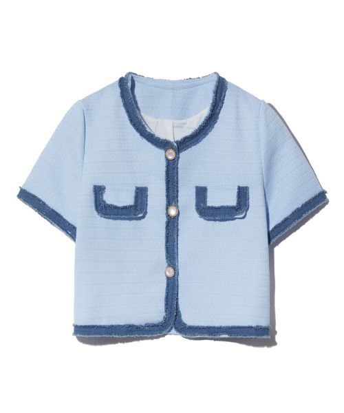 85-VIVAJ053 컬러 쉐입 크롭 트위드 하프 자켓 블루