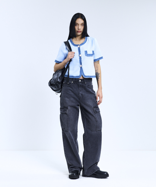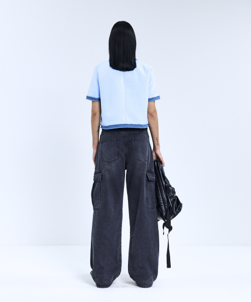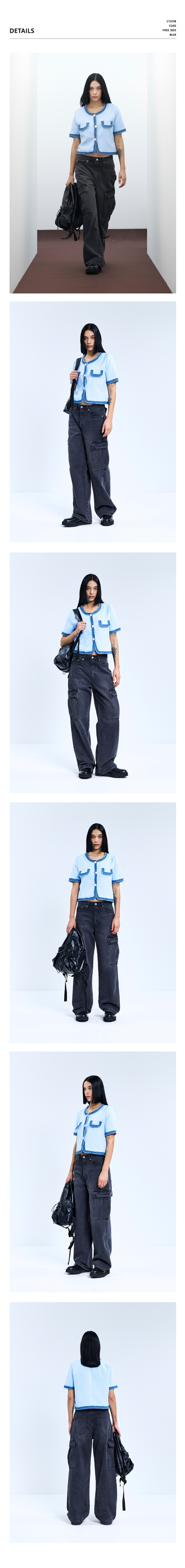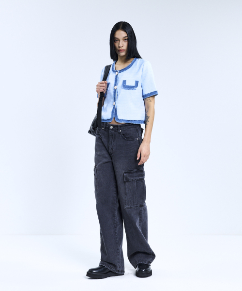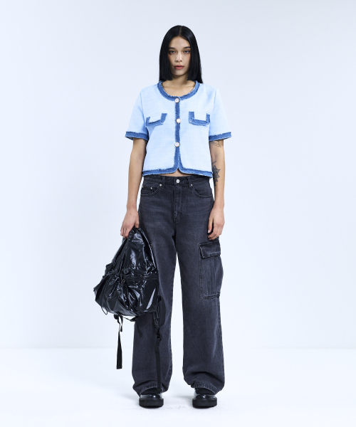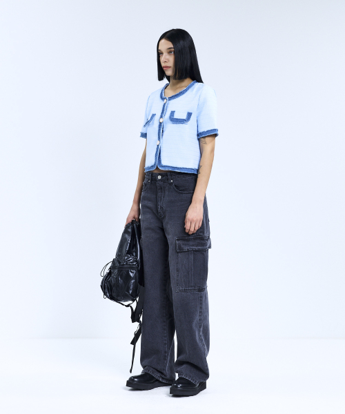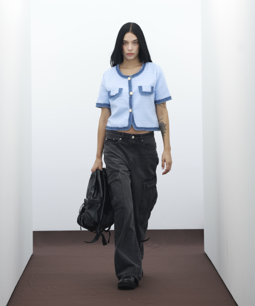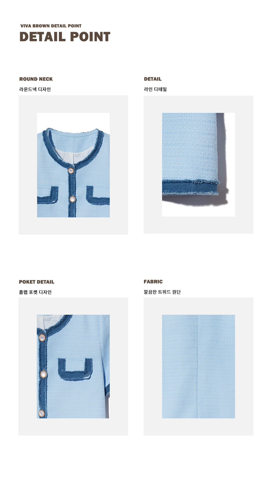 85-VIVAJ053 컬러 쉐입 크롭 트위드 하프 자켓 블루