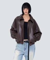 85-VIVA152 헤리티지 오버핏 레더 자켓 브라운