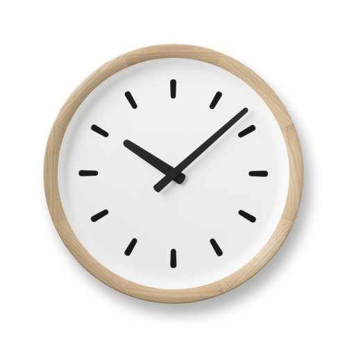 이 벽시계의 디자인은 그릇의 모양에서 영감을 받았습니다. 나무틀을 향해 부드럽게 솟아오른 시계의 전면은 여백이 넓고, 어떤 각도에서 보더라도 시계 바늘을 읽기 쉽습니다. 그릇처럼 생긴 시계 모양은 통일감이 있어 시계 바늘을 또렷하게 만들어 주는 동시에 주변 빛에 부드러운 그림자를 만들어냅니다. 바신 라인에는 물방울을 닮은 팁이 있는 라인 디자인이 있습니다. 이로 인해 가독성이 향상되고 깨끗하면서도 유연한 인상을 줍니다.