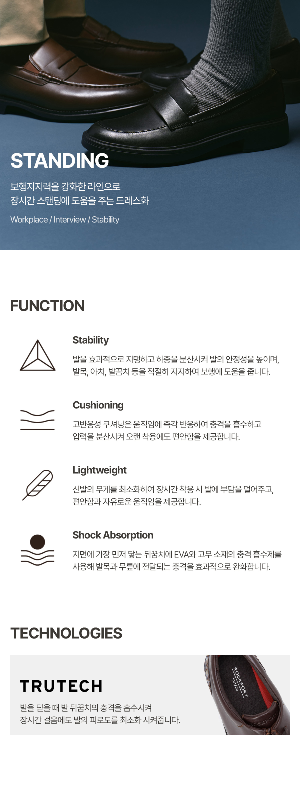 락포트(ROCKPORT)는 아메리칸 헤리티지를 바탕으로 현대인에게 사랑받는 글로벌 슈즈 브랜드입니다. 1971년 메사추세츠 작은 트럭에서 시작되어 스포츠화 기술을 구두에 접목한 드레스포츠, 안정성과 유연성을 극대화한 토탈모션 기술을 바탕으로 다양한 라인업을 선보이고 있습니다. 편안하면서도 스타일리시한 신발을 찾는 소비자들에게 최고의 선택을 제안합니다.