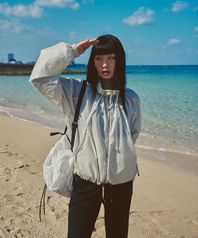 LIGHT SHIRRING WINDBREAKER (BEIGE-GREY)