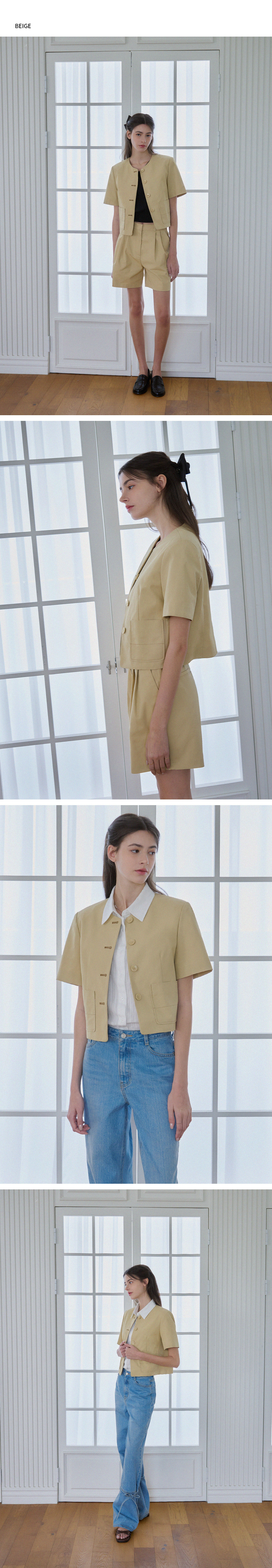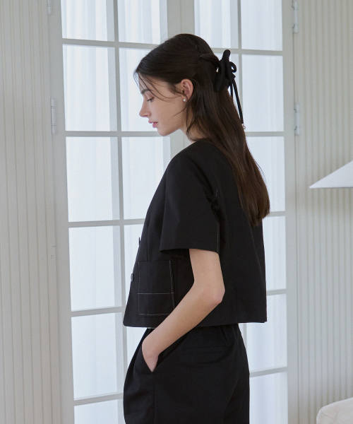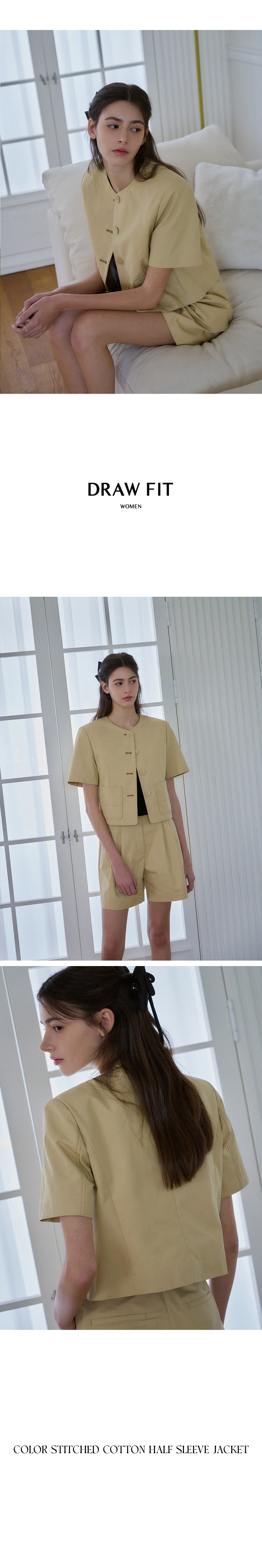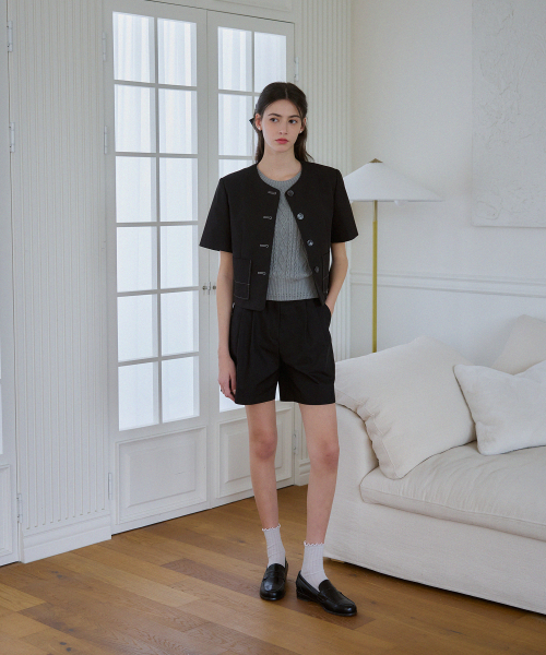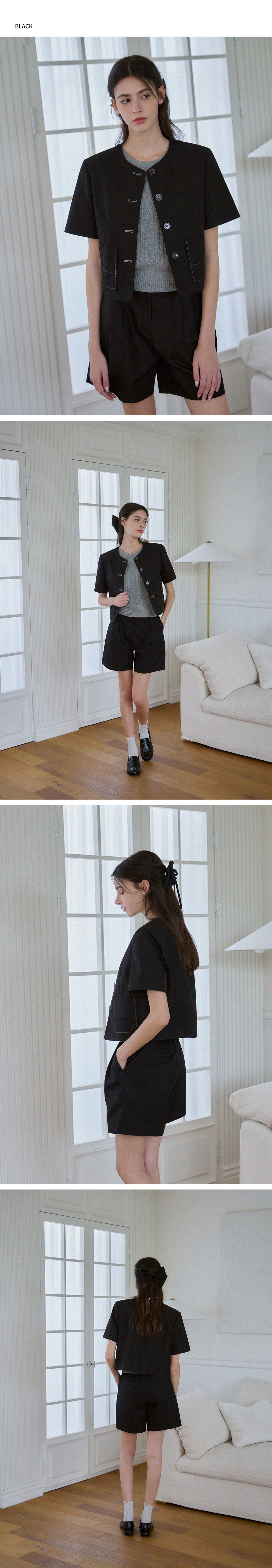 컬러 스티치 코튼 반팔 자켓 [BLACK]