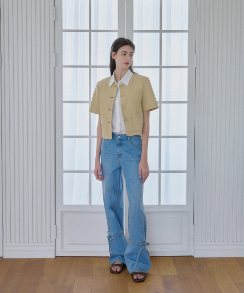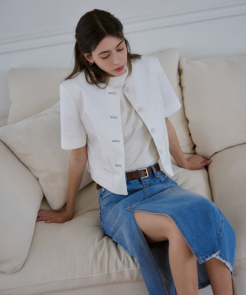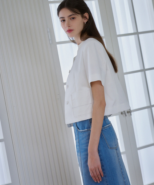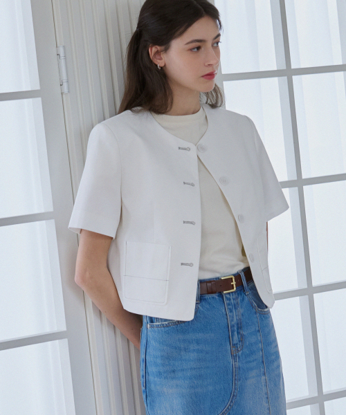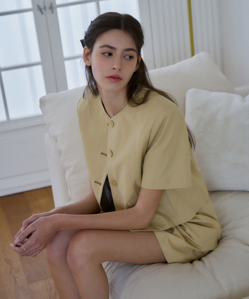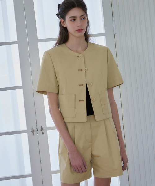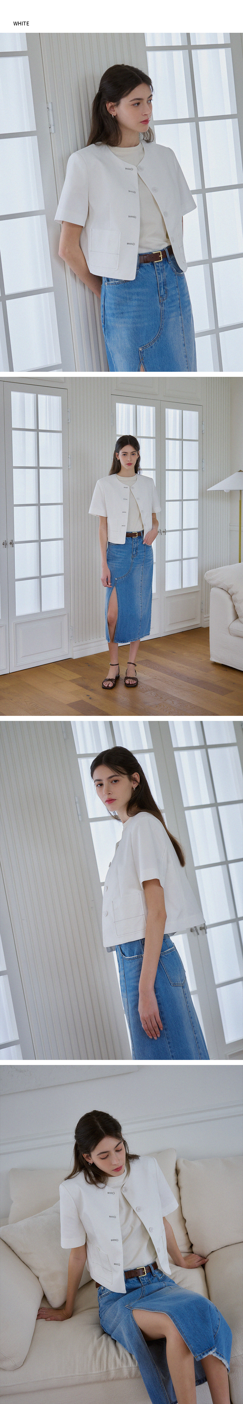 컬러 스티치 코튼 반팔 자켓 [BLACK]