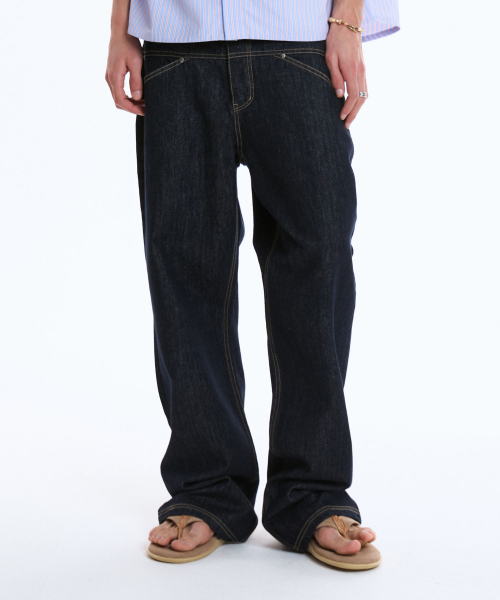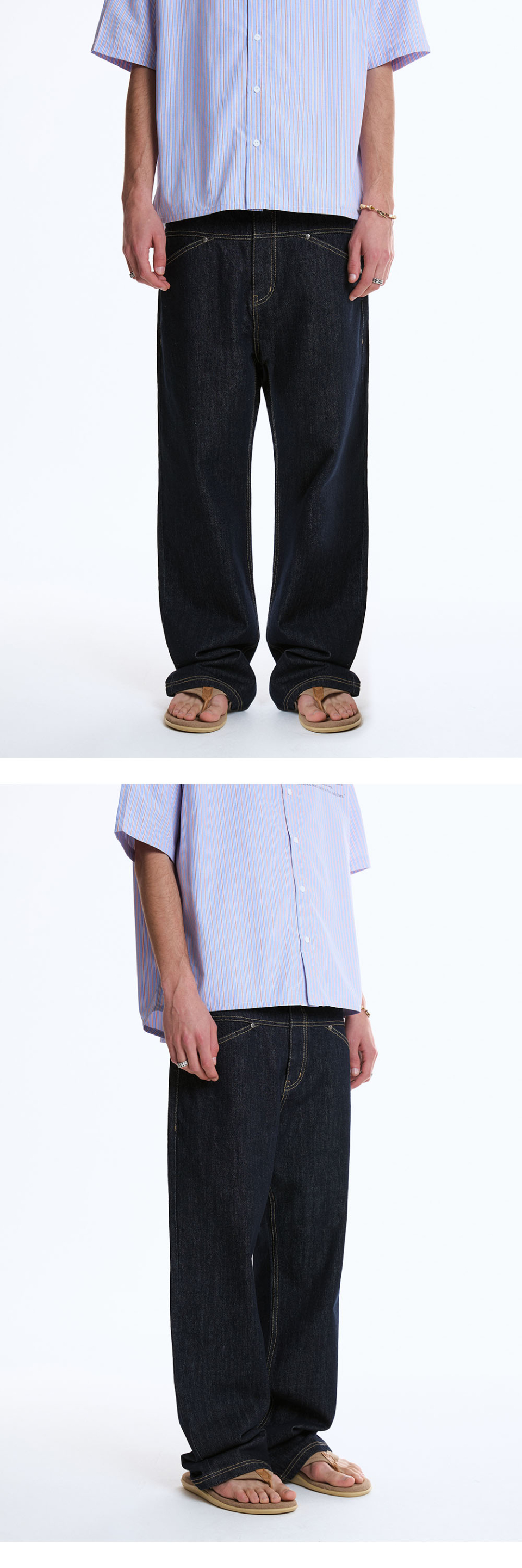 릴렉스 스트레이트 데님 팬츠 [블랙]