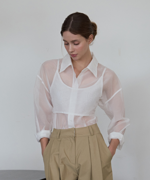 시스루 나일론 셔츠-화이트