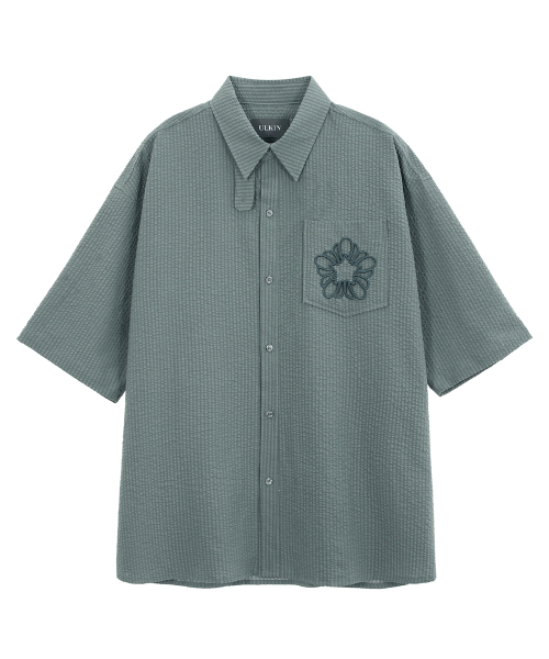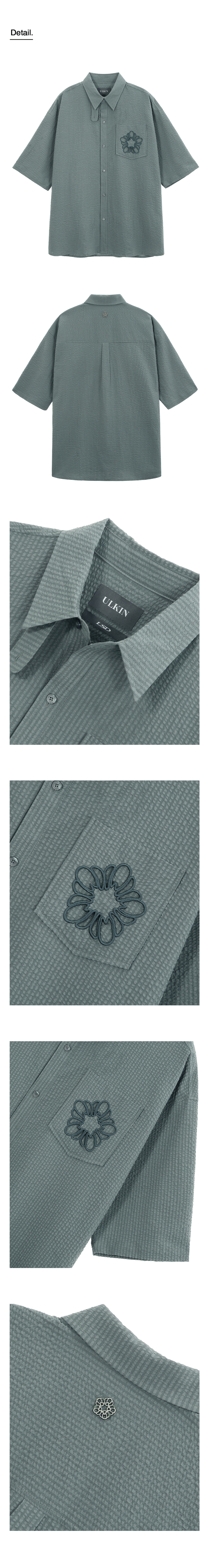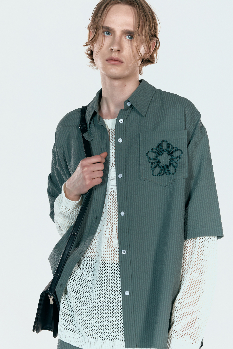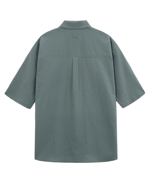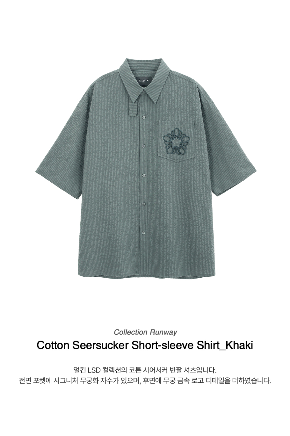 [런웨이] 코튼 시어서커 반팔 셔츠_카키