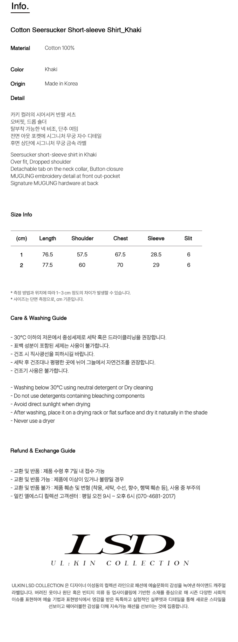 본 상품은 Cotton Seersucker Shorts_Khaki와 페어링하여 착용 가능한 셋업 상품입니다.