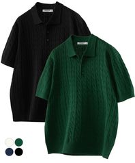 워셔블 쿨 코튼 케이블 반팔 카라 니트 4Color