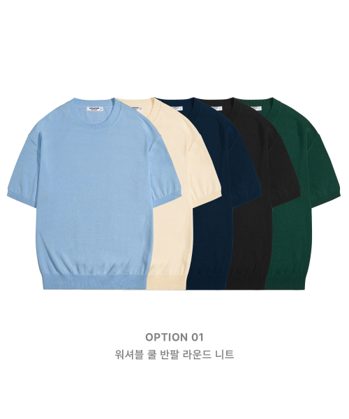 [SET][카라+라운드선택]쿨 코튼 워셔블 니트 세트 4COLOR