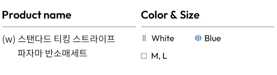 (w)스탠다드 티킹 스트라이프 파자마 반소매세트 화이트