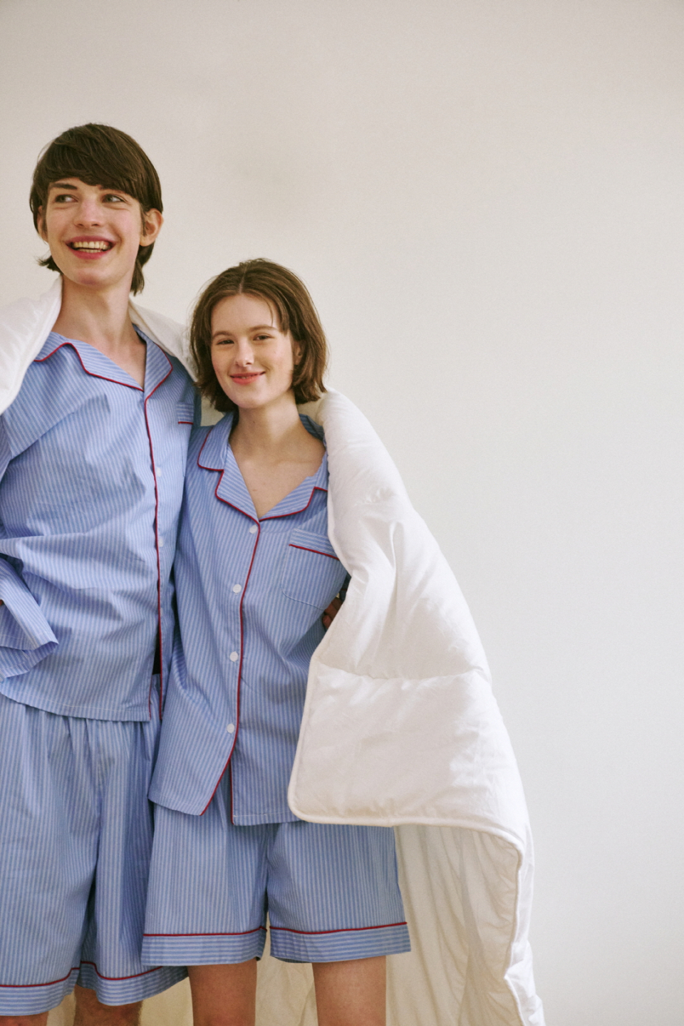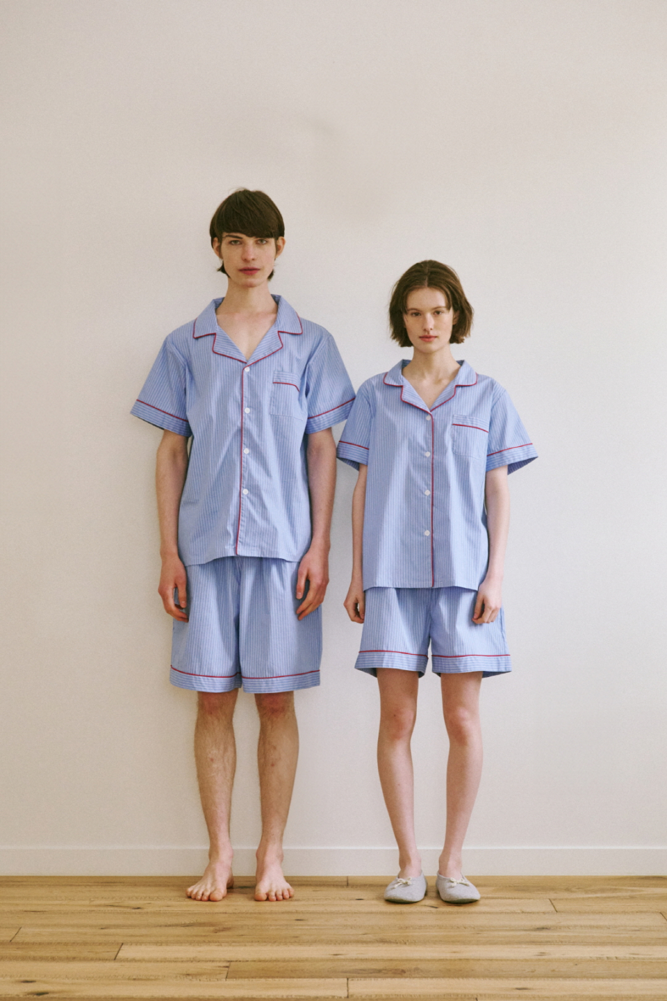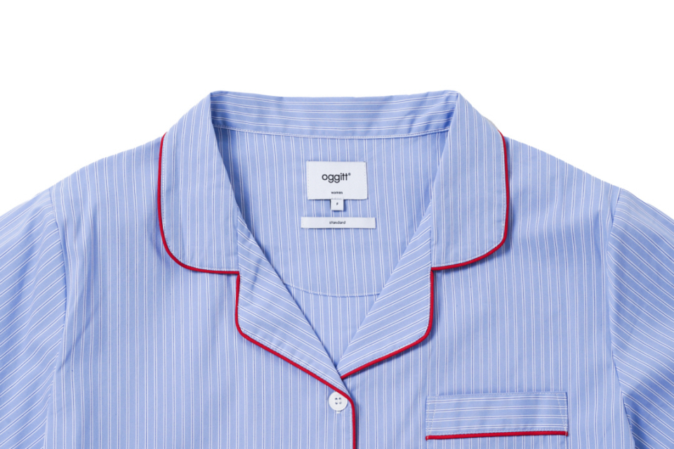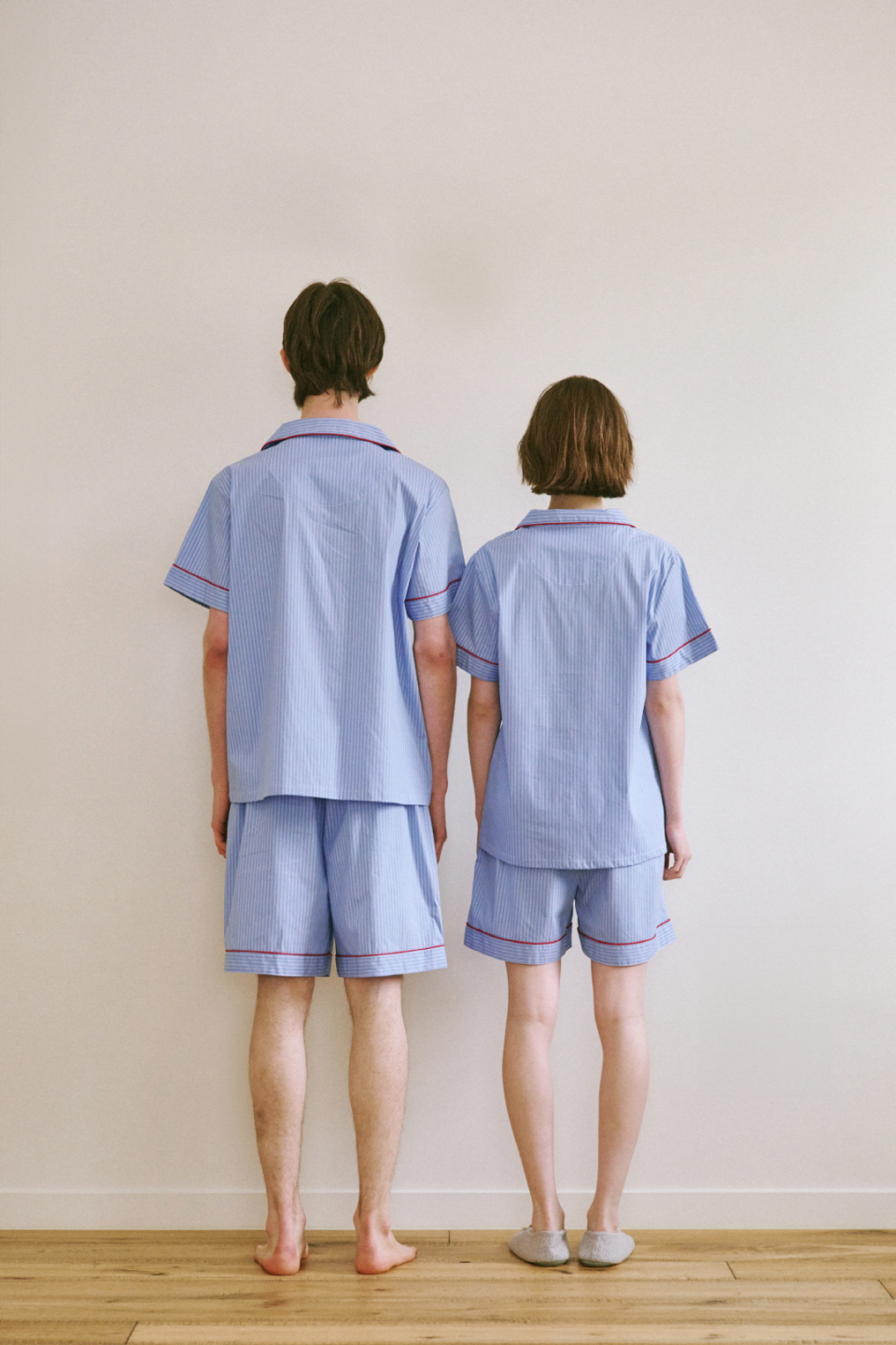 (w)스탠다드 티킹 스트라이프 파자마 반소매세트 블루