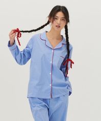 (w)스탠다드 티킹 스트라이프 파자마 긴소매세트 블루