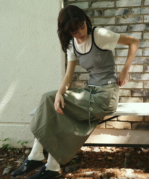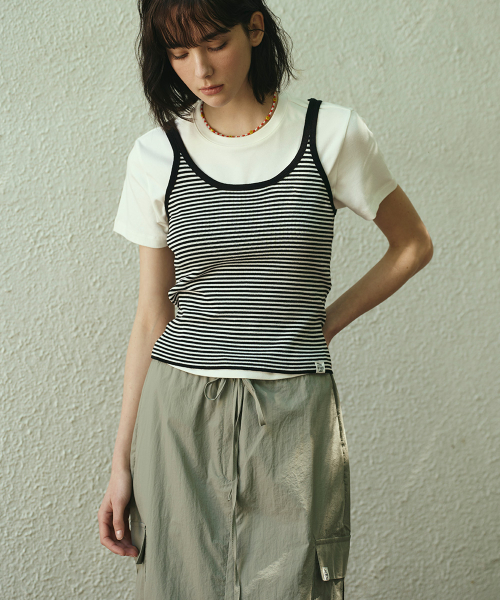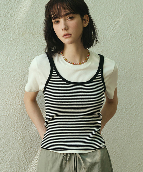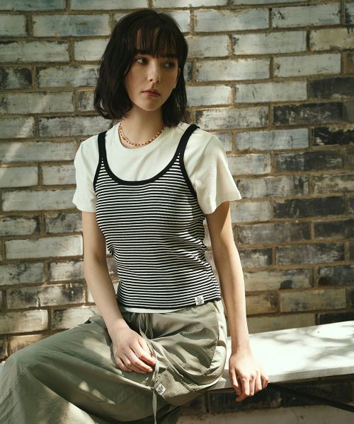 편안한 착용감의 암홀 라인으로 단독 혹은 레이어드 탑으로 활용 추천
