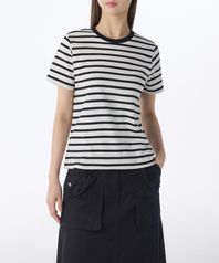스트라이프 패턴이 경쾌한 U넥 니트 끈나시탑