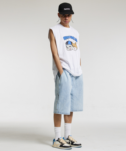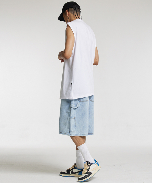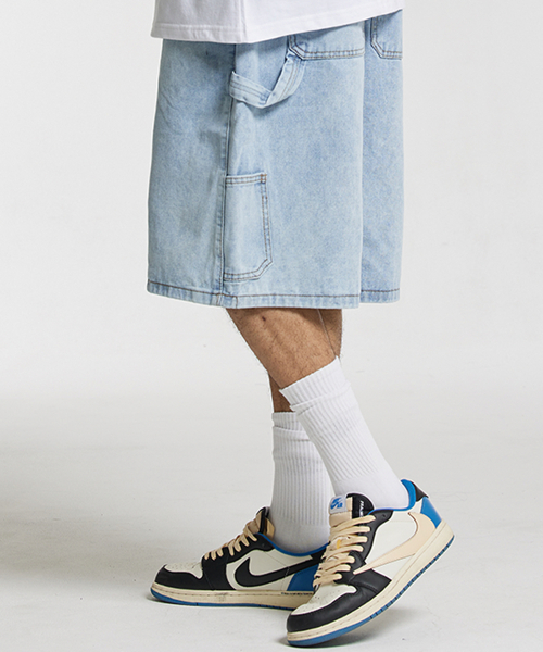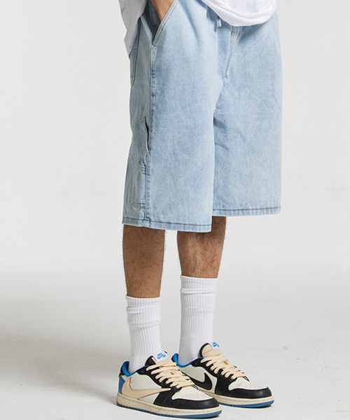 버뮤다 카펜터 숏 데님팬츠 밴딩 라이트 블루
