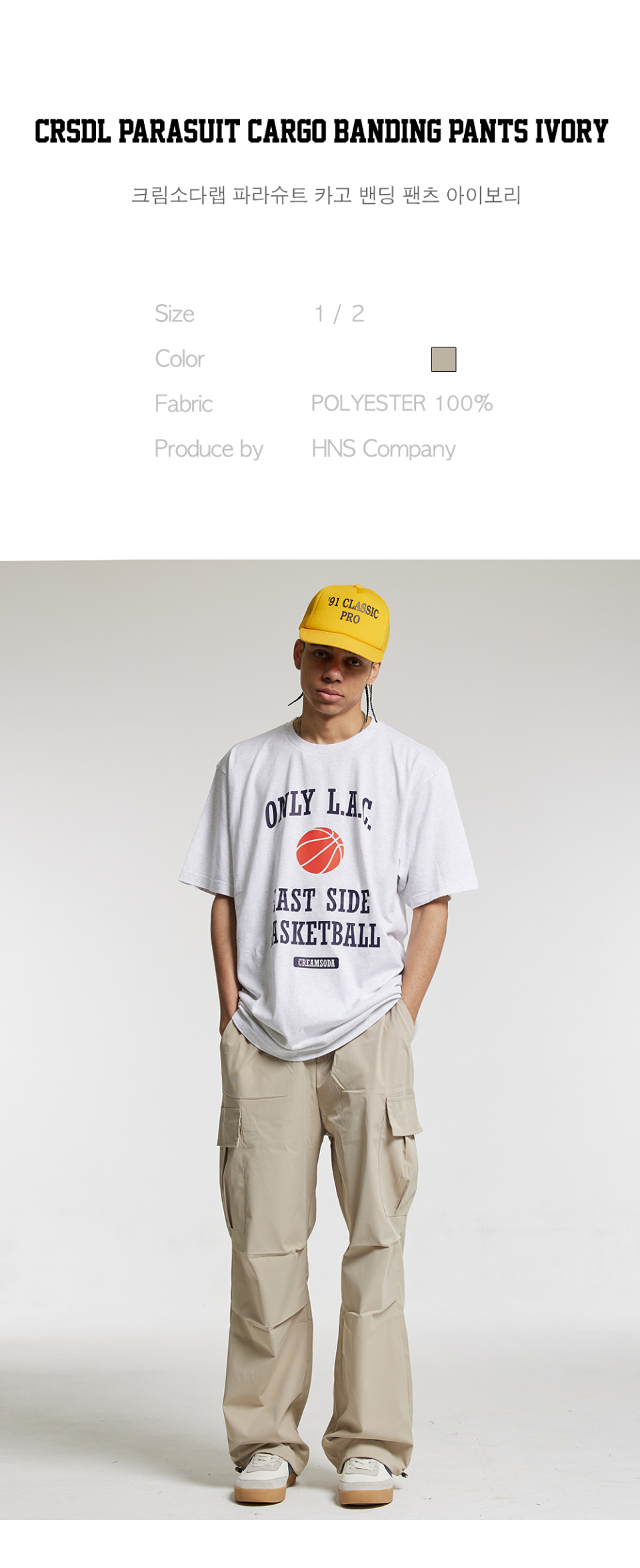 씨알에스디엘 파라슈트 카고 밴딩 팬츠 아이보리