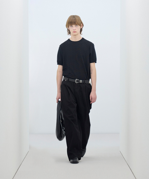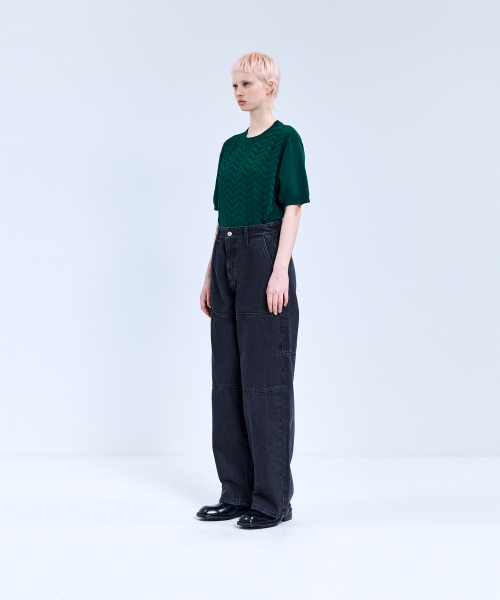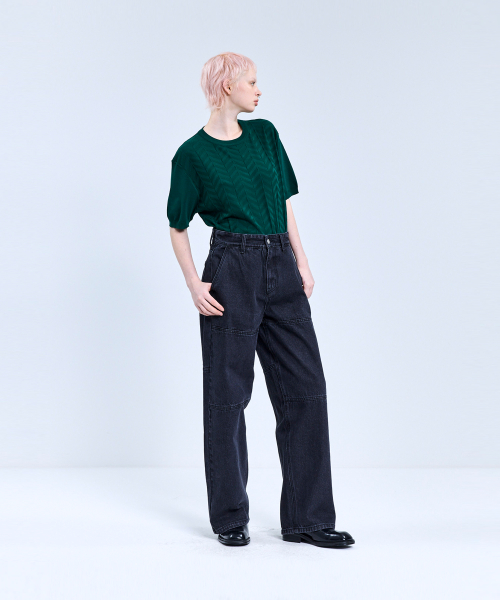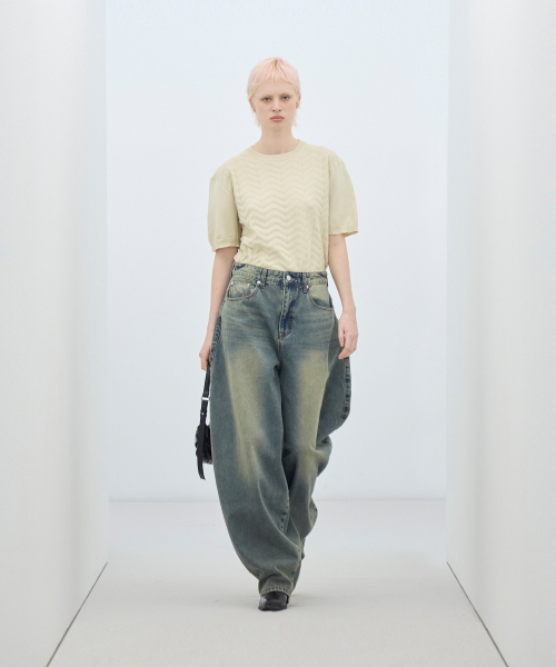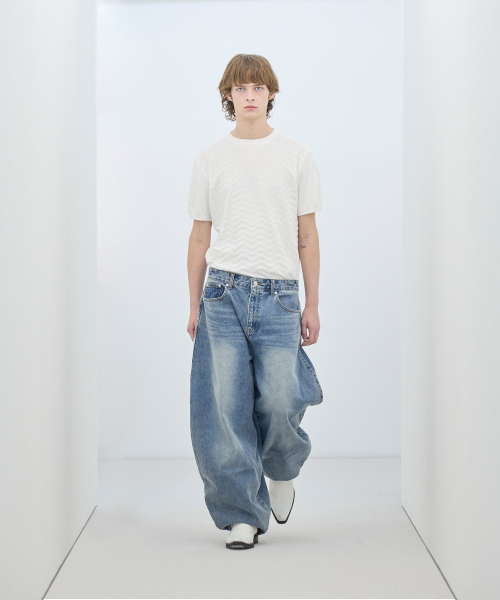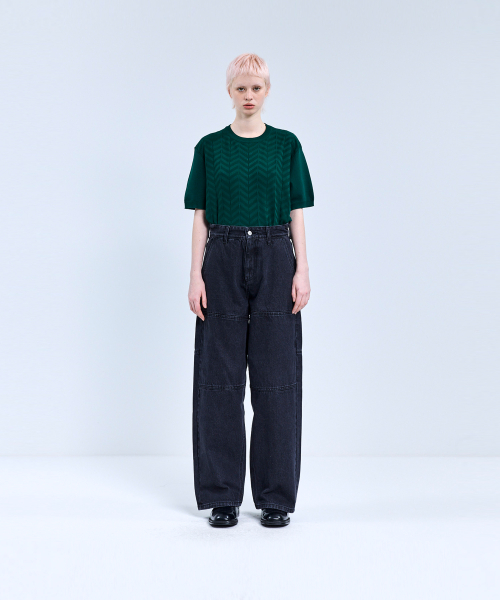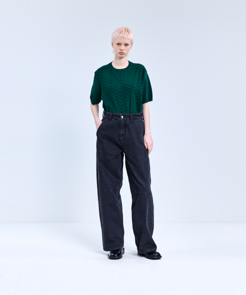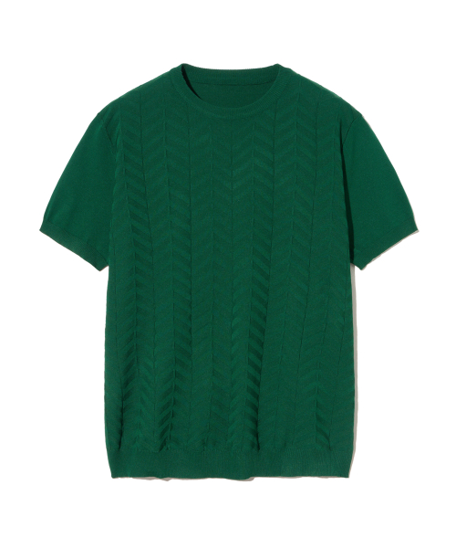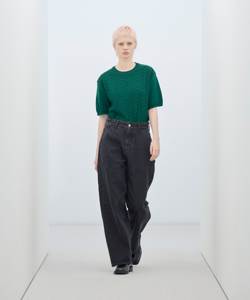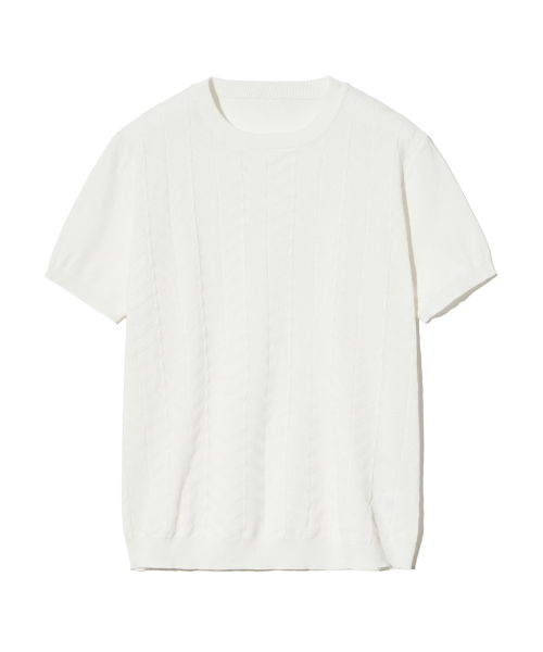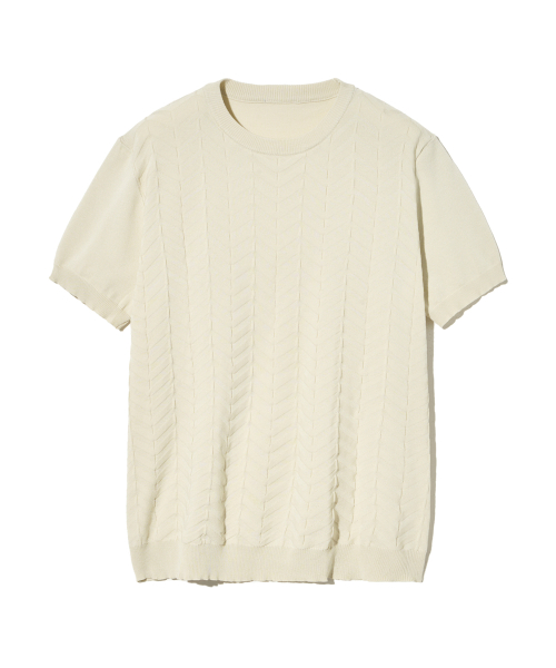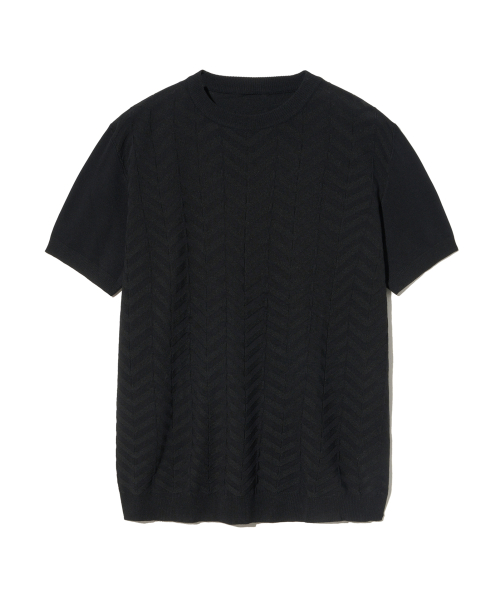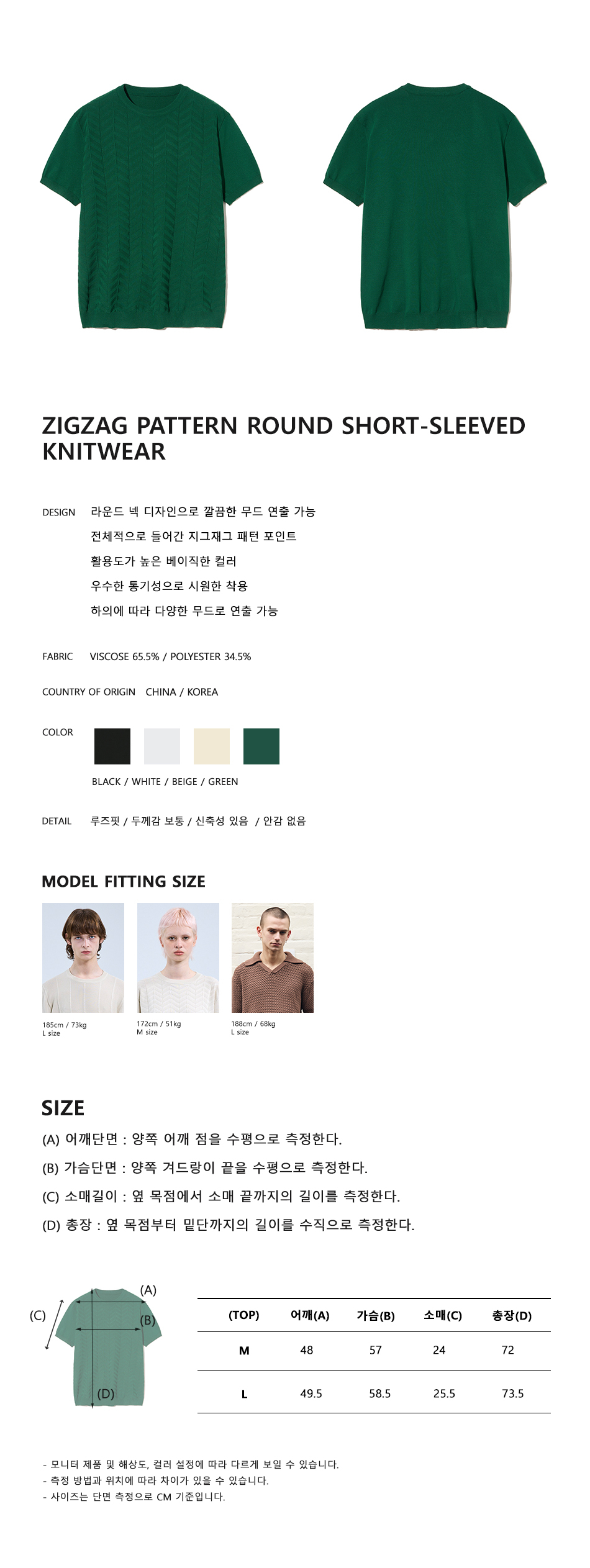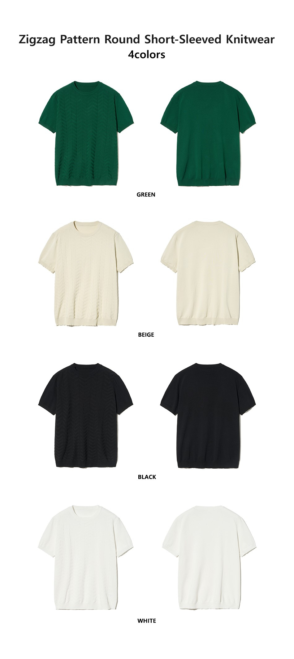 86-IROJ051 지그재그 패턴 라운드 반팔 니트 4colors