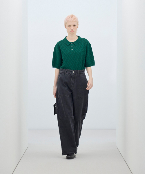 86-IROJ019 라이트 웨이브 쉐입 반팔 카라니트 4color