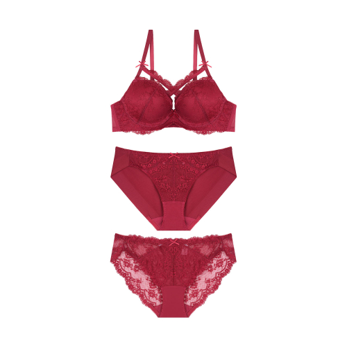 크로스 레이스 와인 브라 레이스팬티 SET