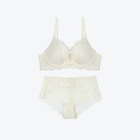 러블리 컴포트 노와이어 브라 레이스팬티 세트_크림