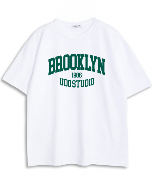 오버핏 크루넥 브루클린 반팔 티셔츠 화이트그린