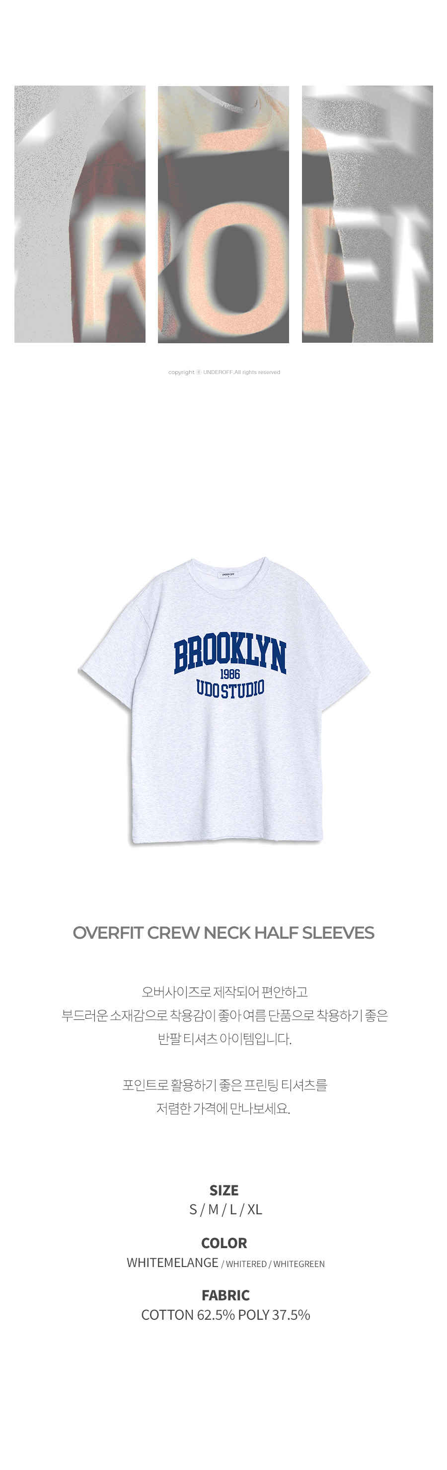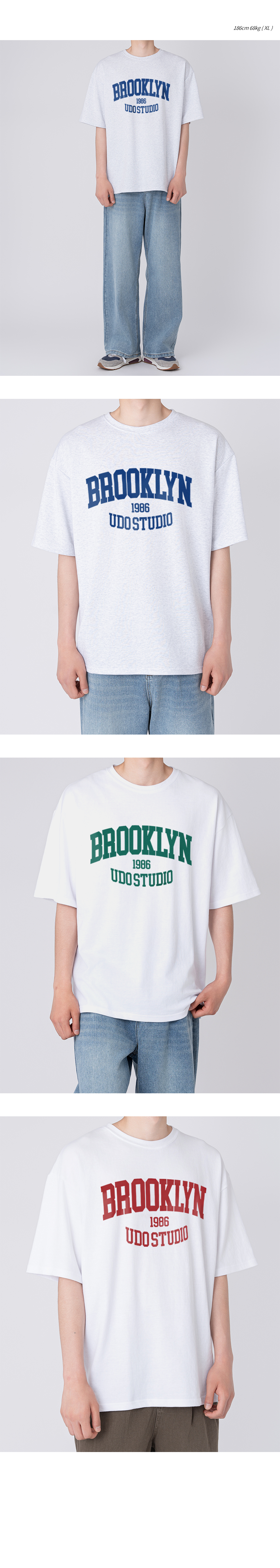 오버핏 크루넥 브루클린 반팔 티셔츠 화이트멜란지