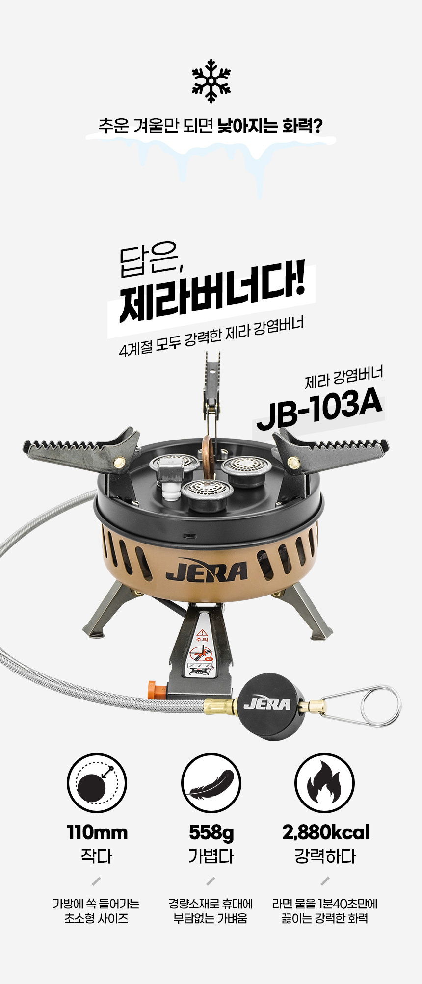 제라(JERA)는 야외용 버너와 스토브 및 산업용 토치를 선보이는 브랜드입니다.독자적인 기술로 더 나은 캠핑문화를 제안합니다.