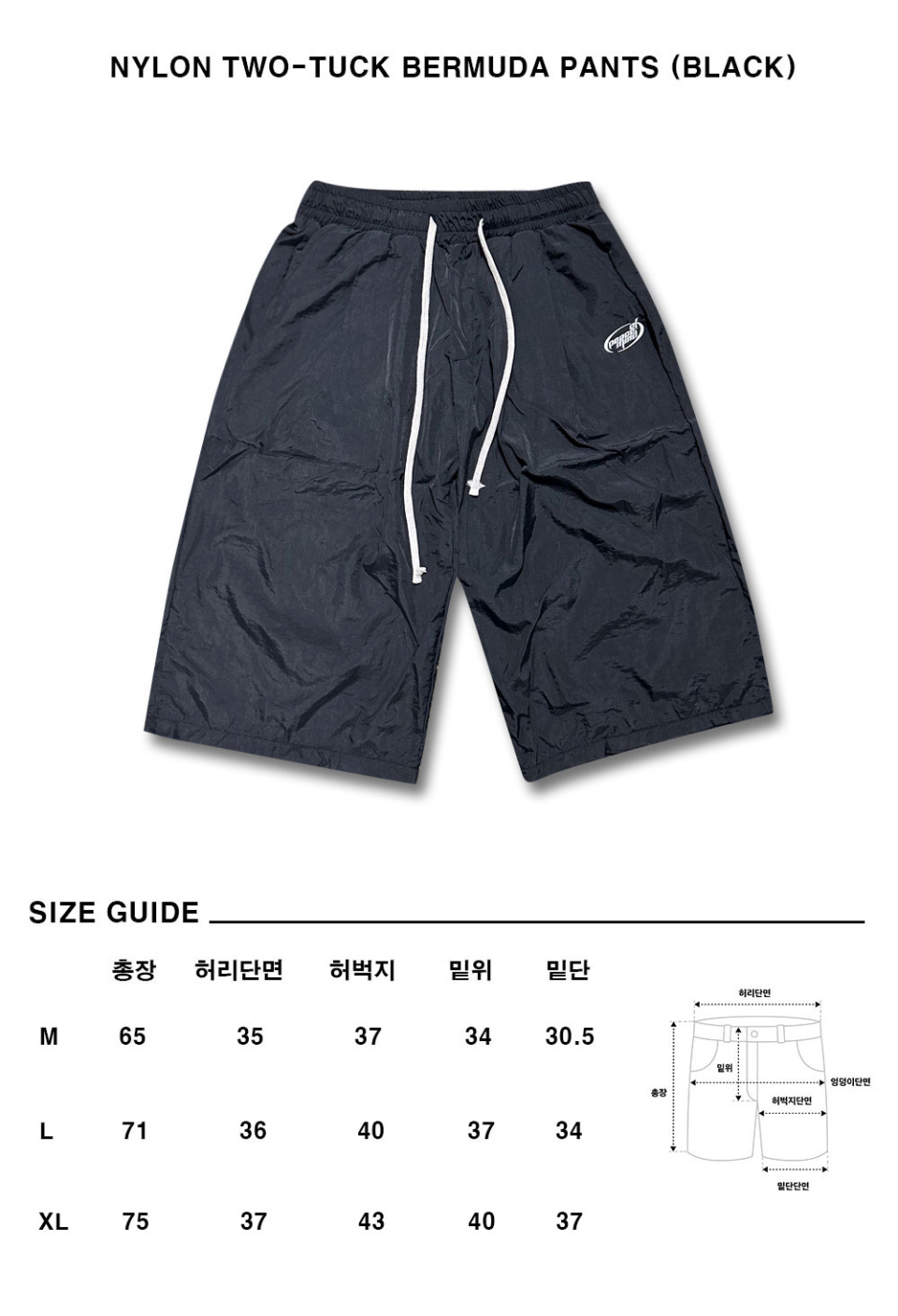 나일론 투턱 버뮤다 팬츠 (블랙)