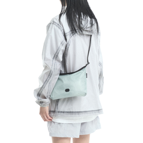 핸드폰, 에어팟, 립밤, 신용카드 등 근거리 외출에 필요한 소지품을 휴대하기 좋은 A5 크기로 무게 42g의 경량 사코슈백입니다.
