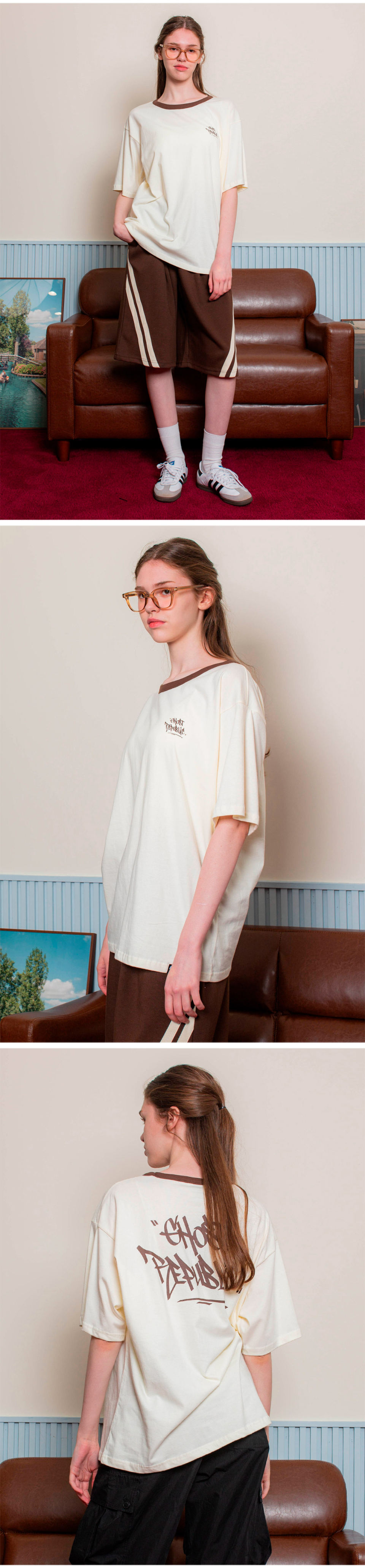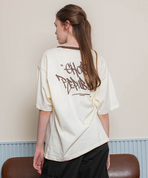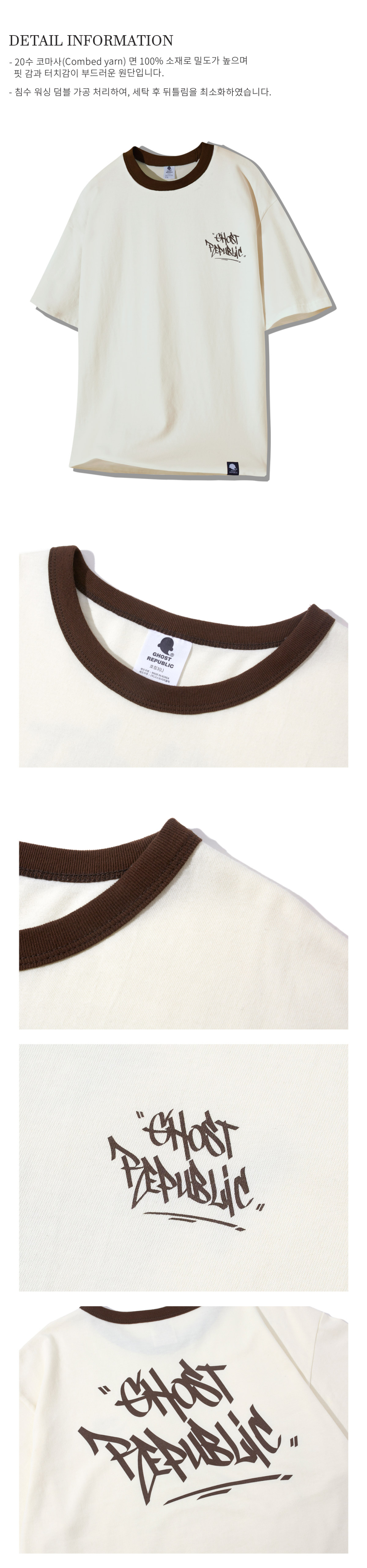 스트릿 오버핏 반팔 티셔츠 GT-367_크림(브라운)