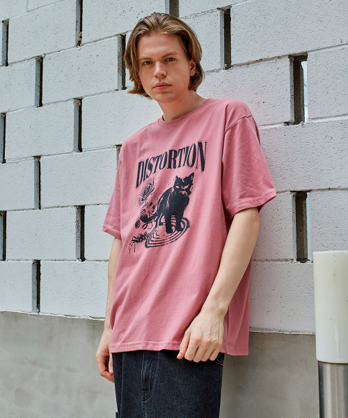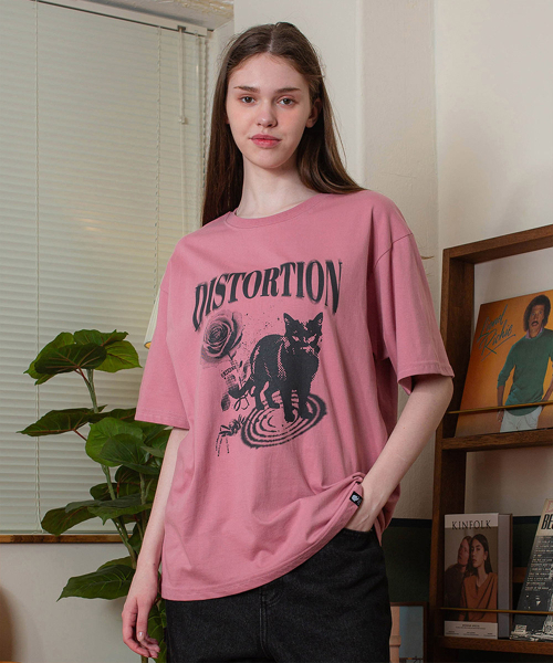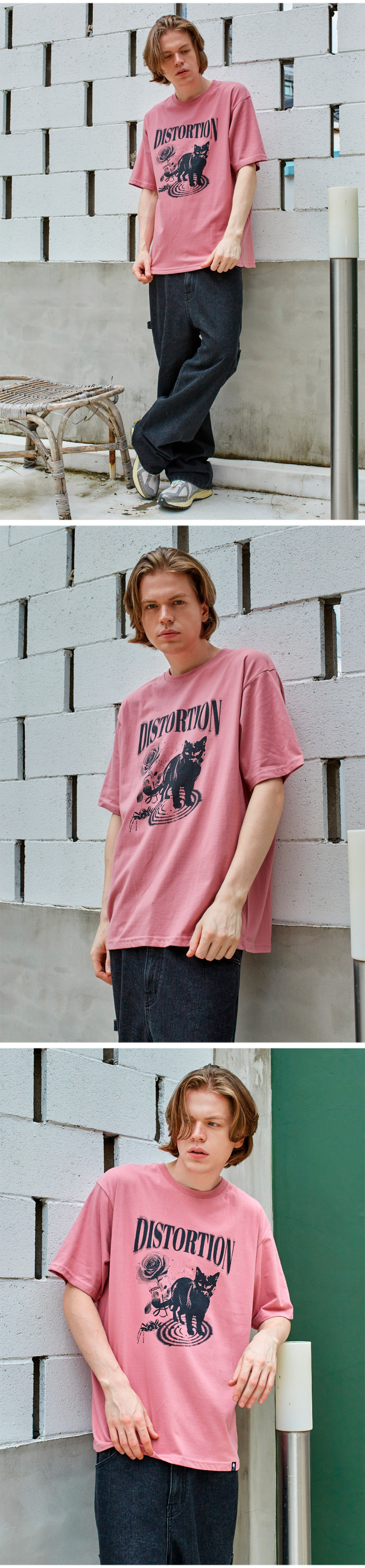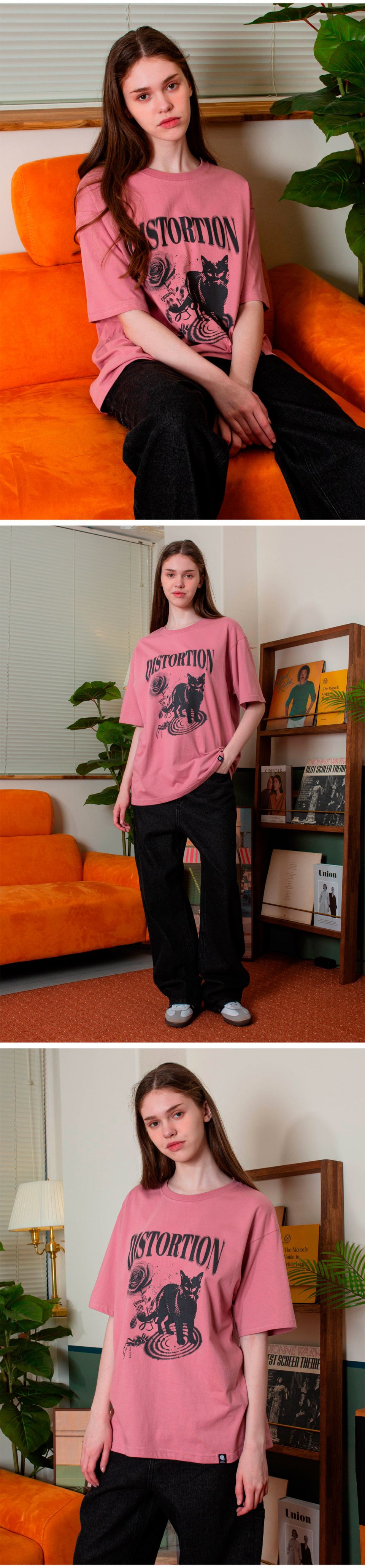 캣 오버핏 반팔 티셔츠 GT-363_다크핑크