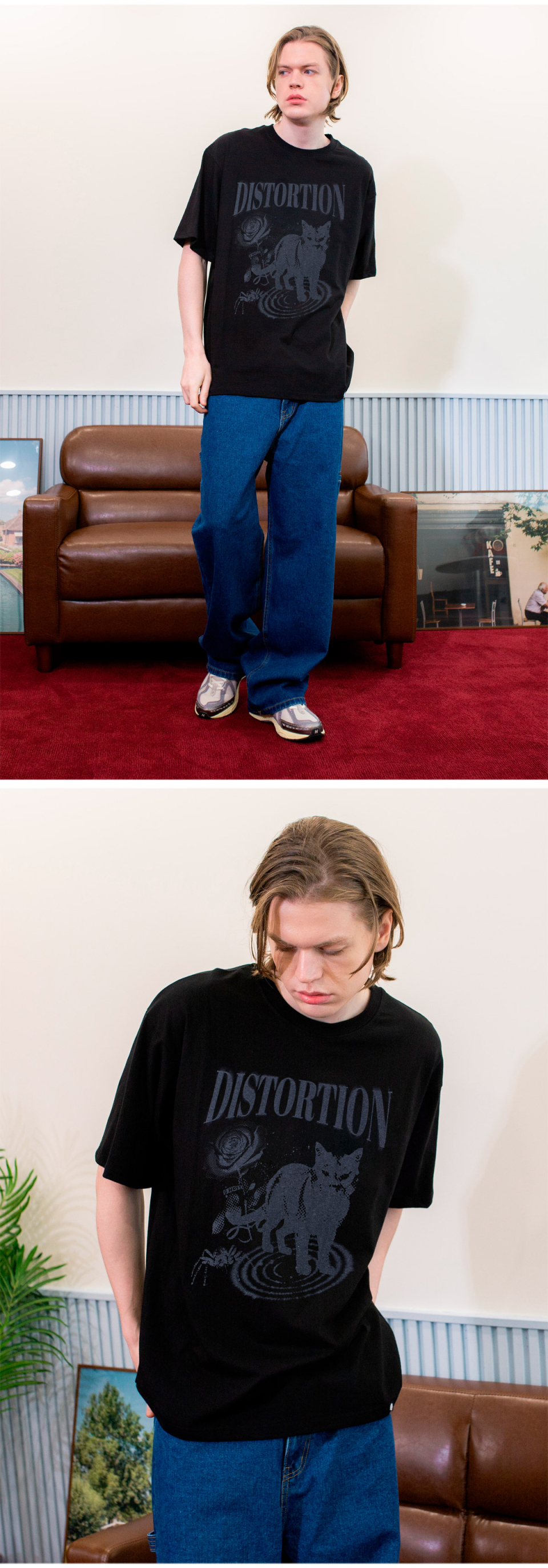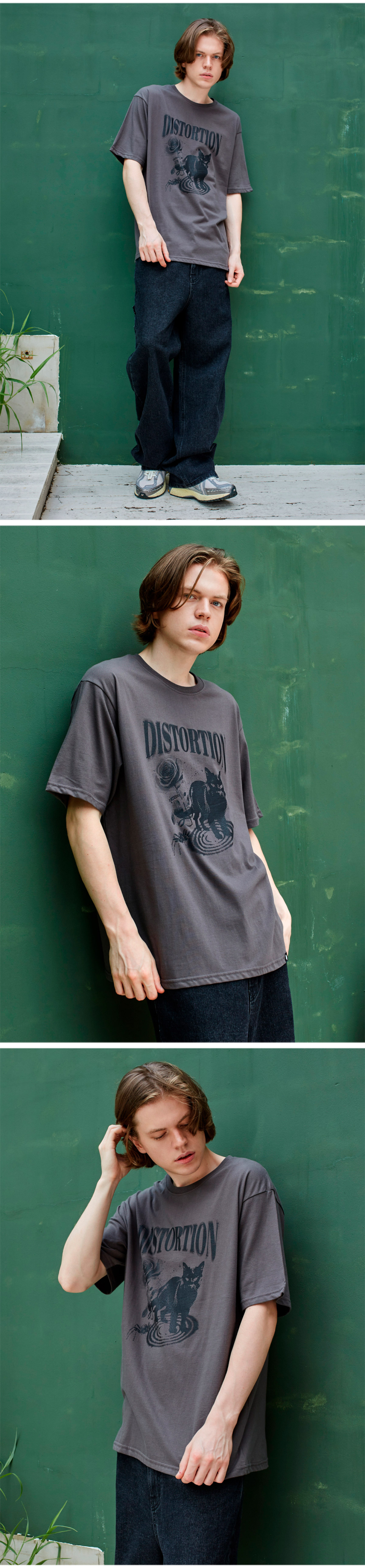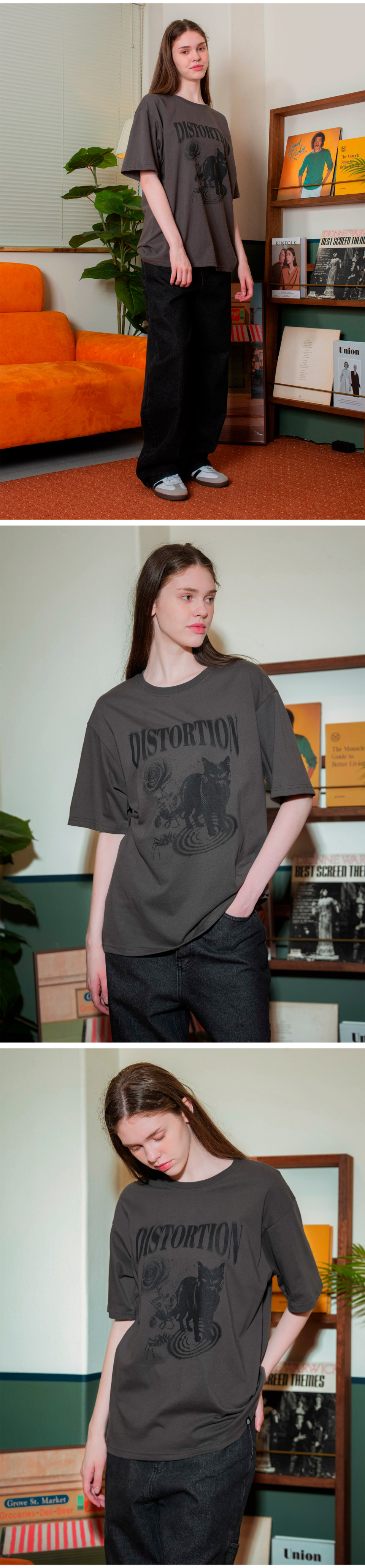 캣 오버핏 반팔 티셔츠 GT-363_다크핑크
