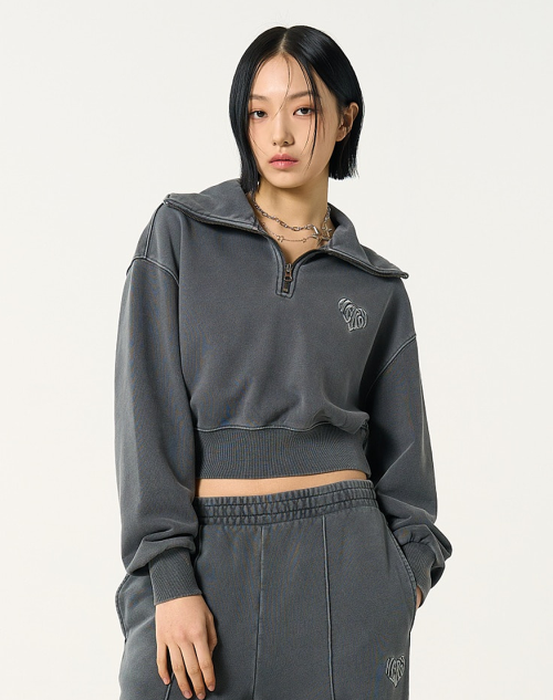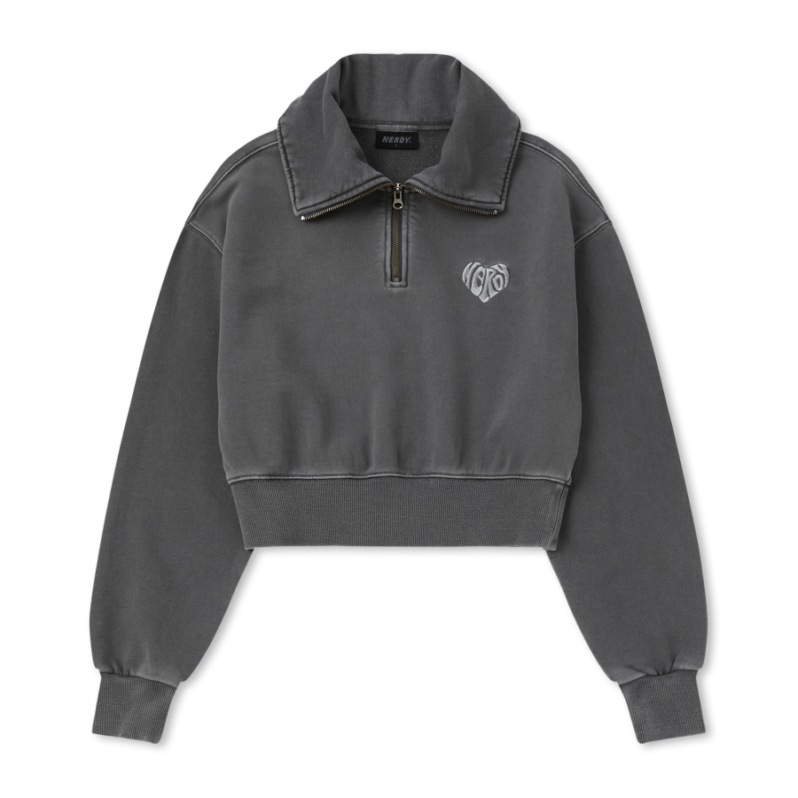 우먼스 수플레 피그먼트 크롭 스웻셔츠 차콜