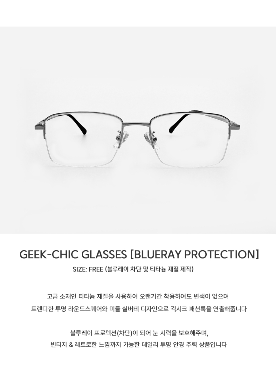 티타늄 긱시크 투명 블루레이 차단 실버테 글라스 안경 [SMDTG] MEN ver.