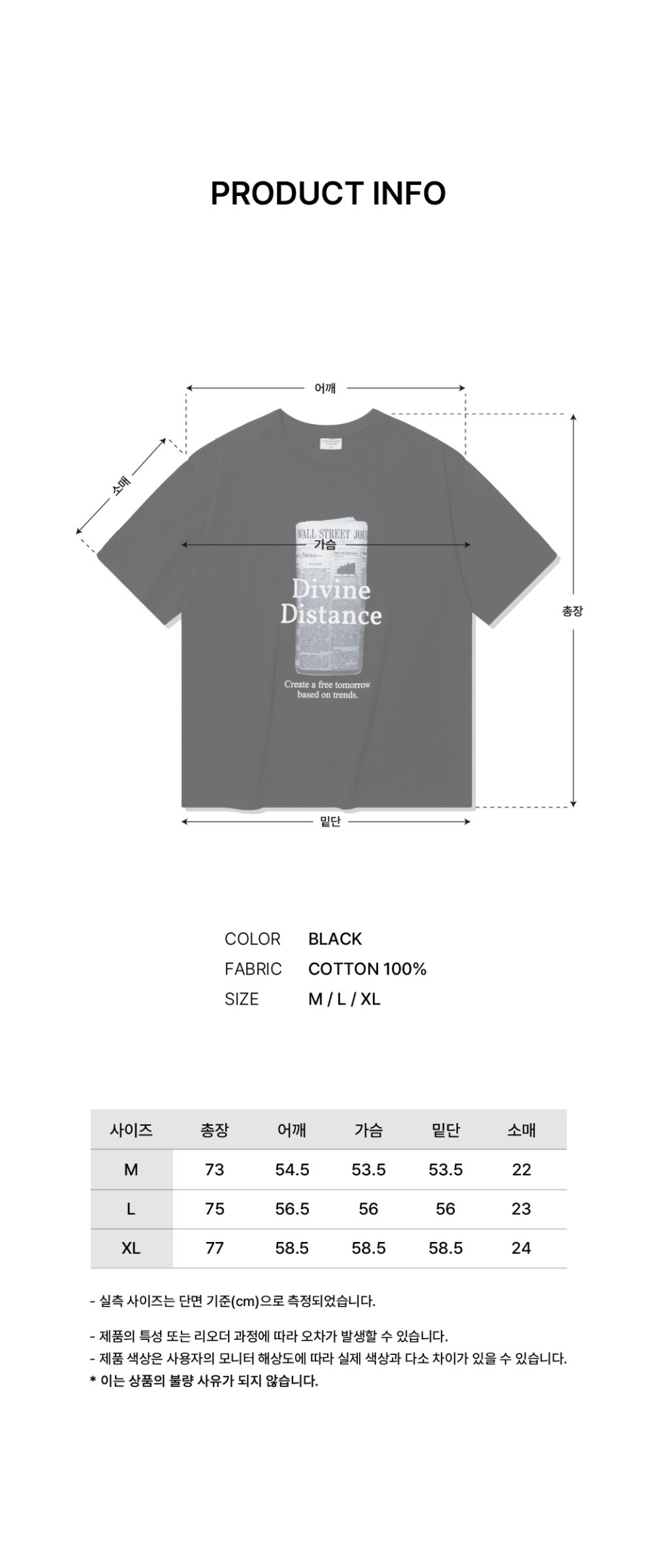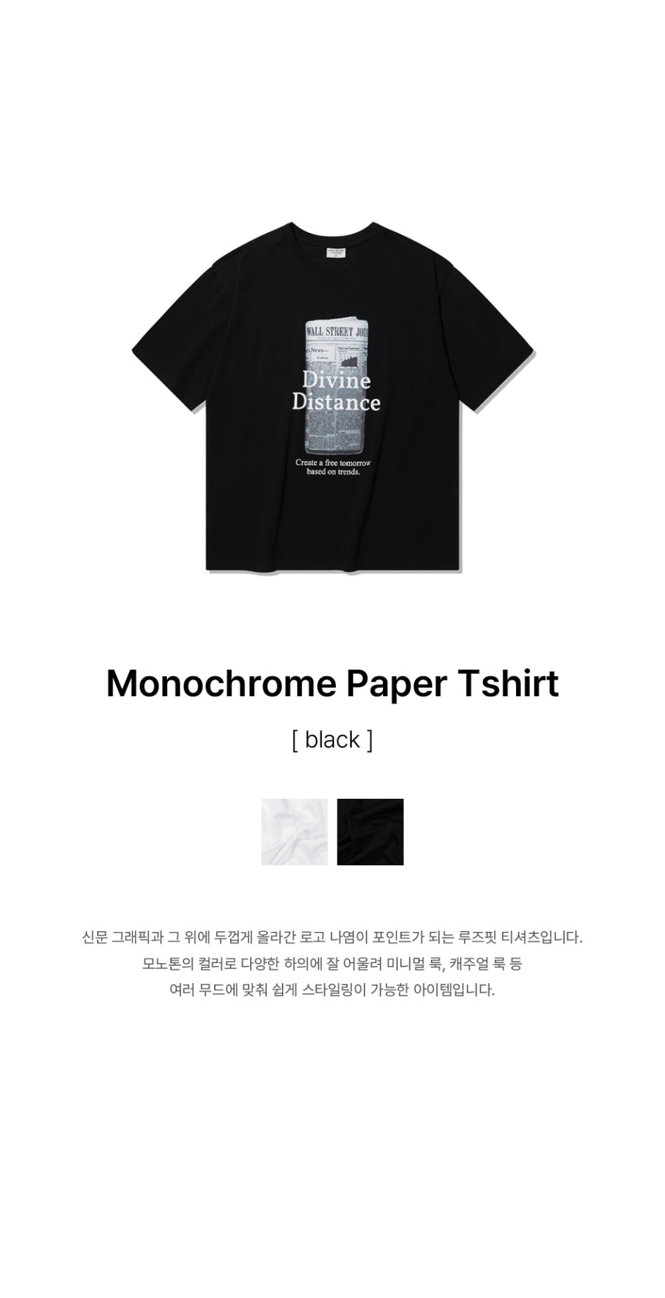 모노크롬 페이퍼 티셔츠 [블랙]