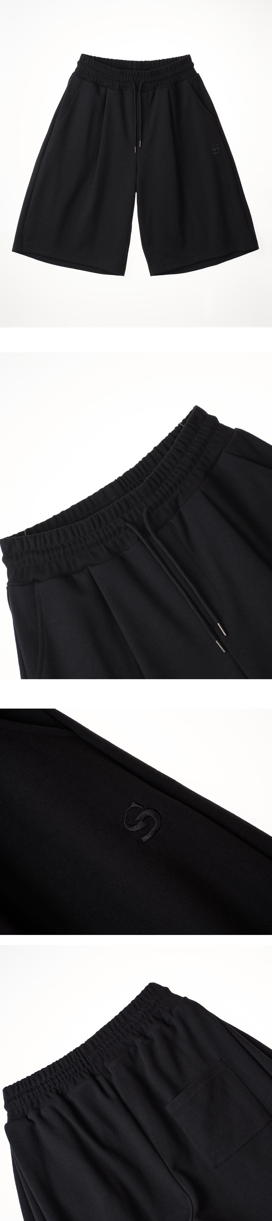 8부 멀티턱 스웨트 버뮤다 블랙