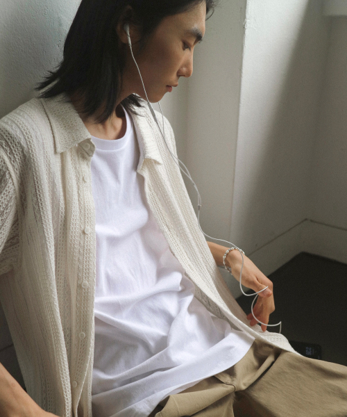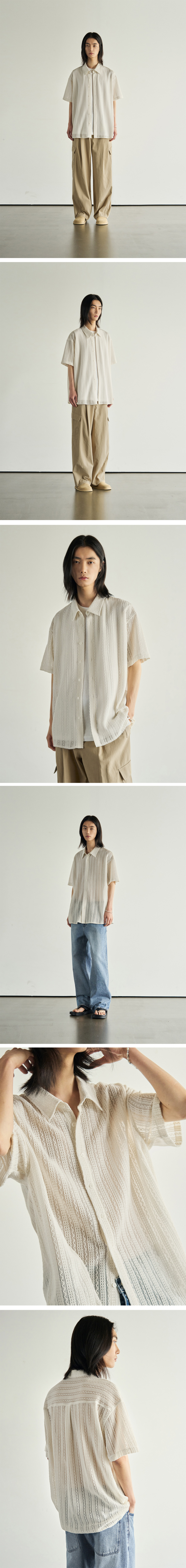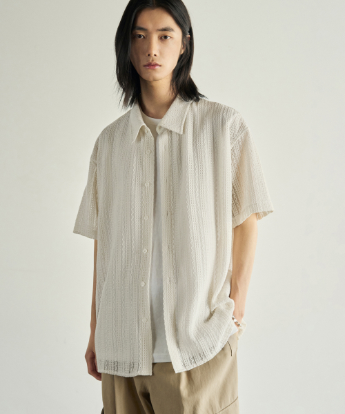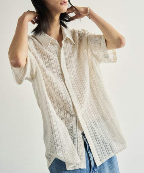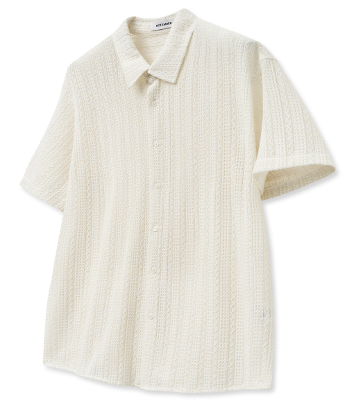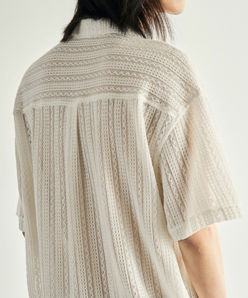 JN160 CROCHET OPEN COLLAR 1/2 SHIRT - IVORY
