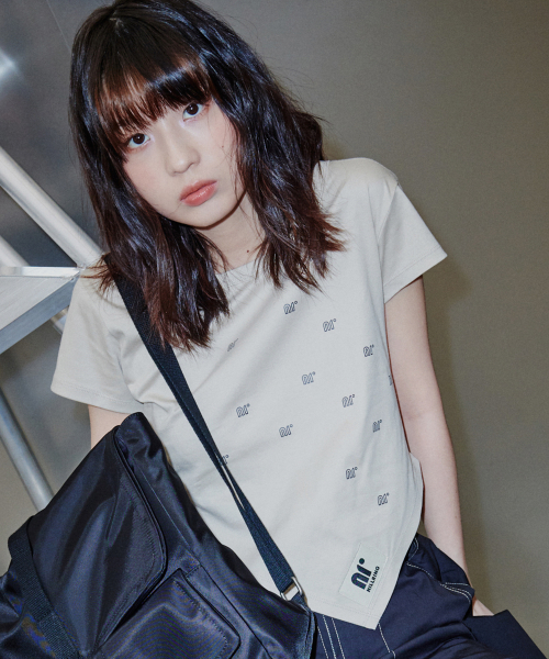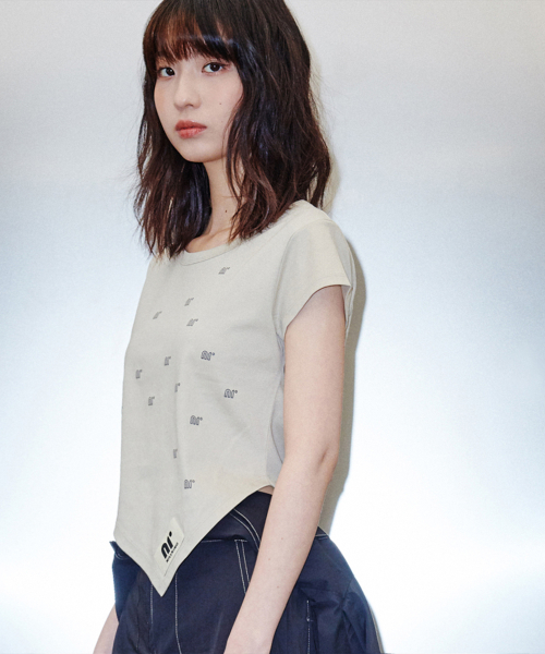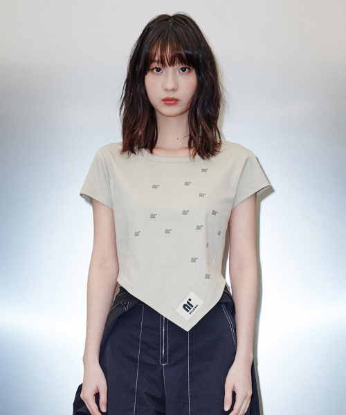 T10.00 Unbalanced Short-sleeved T-shirt _ Printed Beige