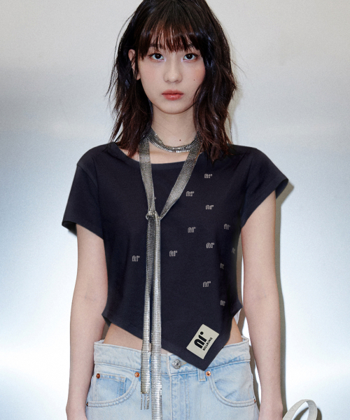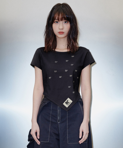 T10.00 Unbalanced Short-sleeved T-shirt _ Printed Black