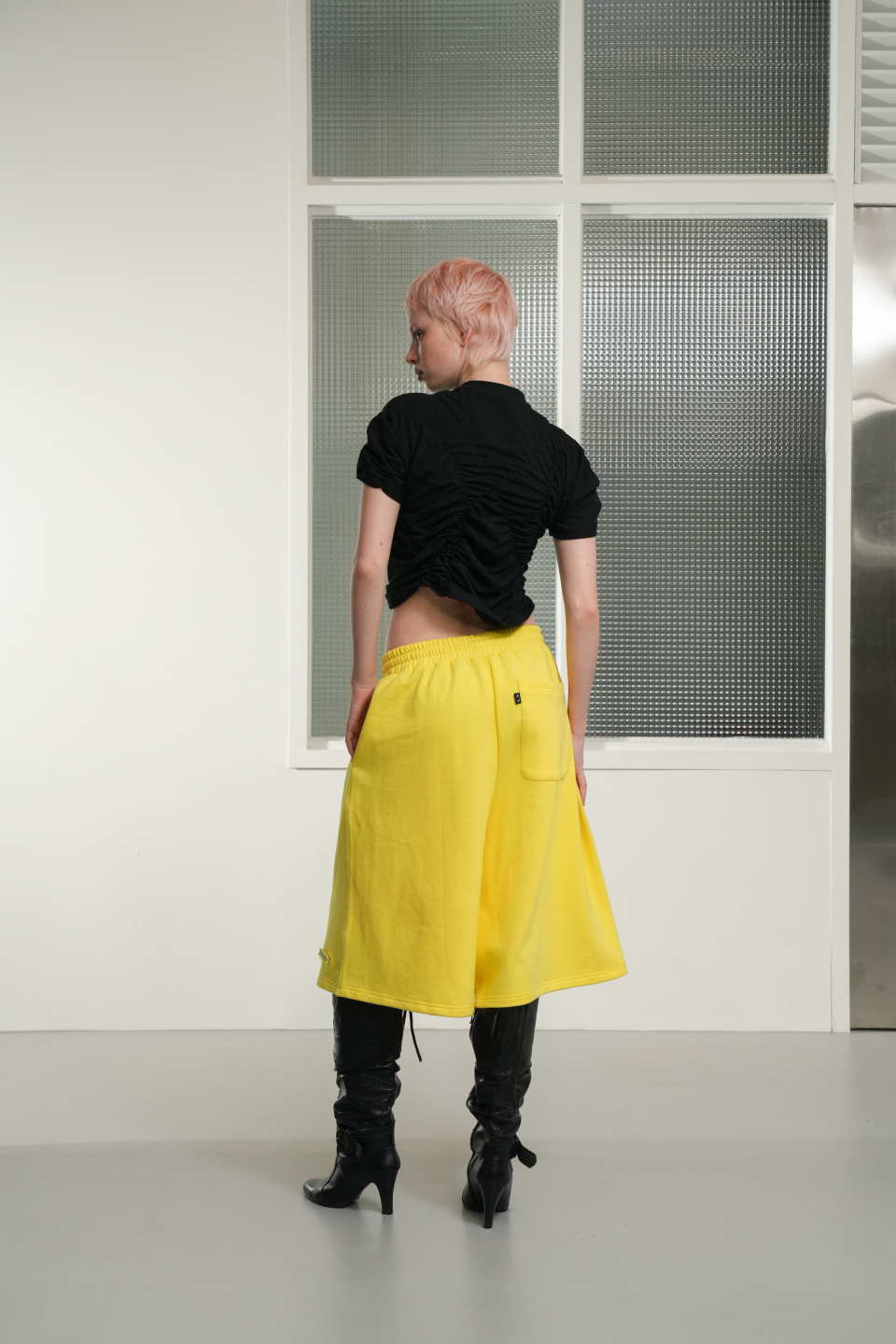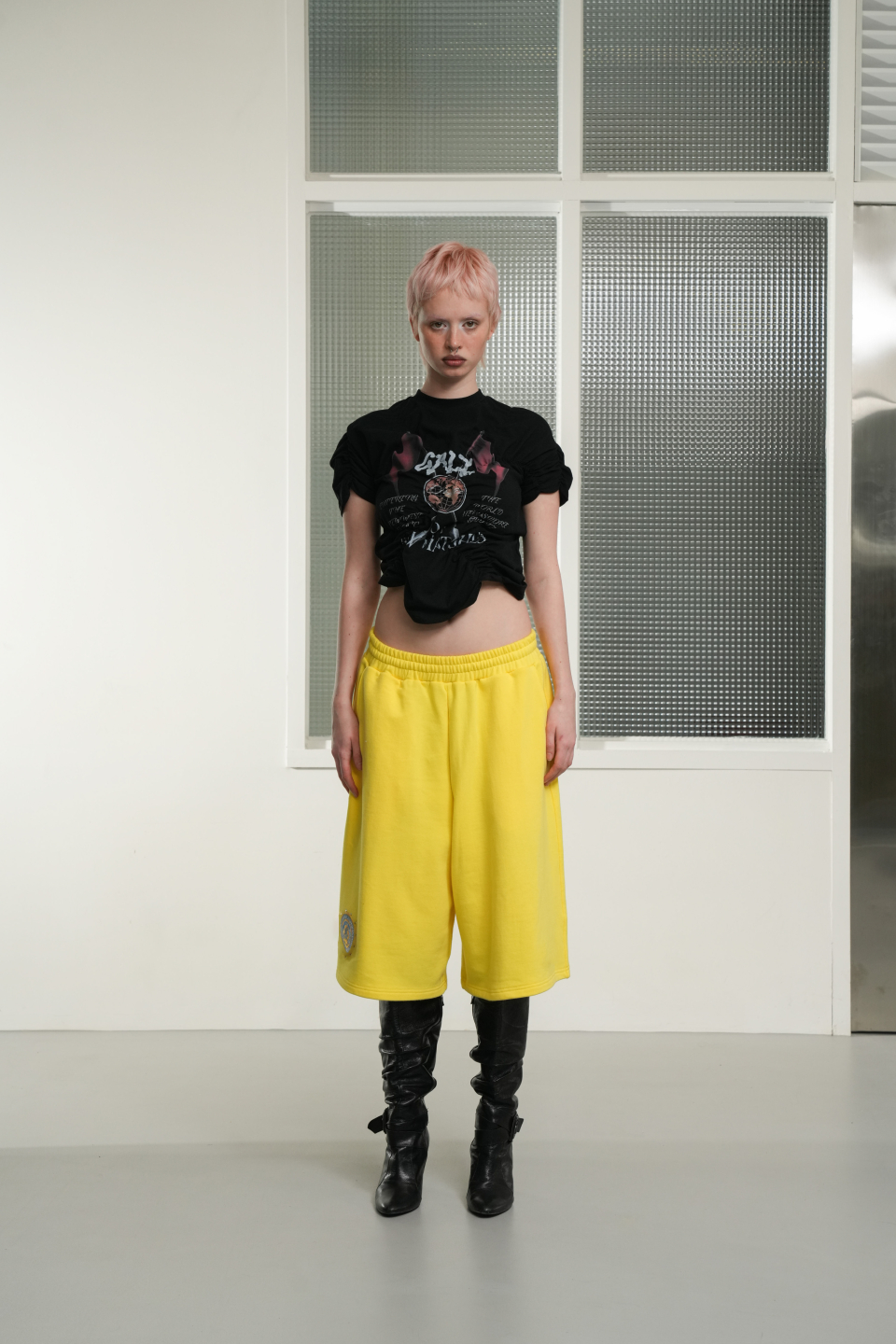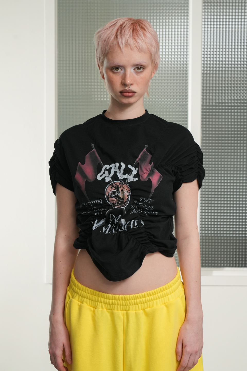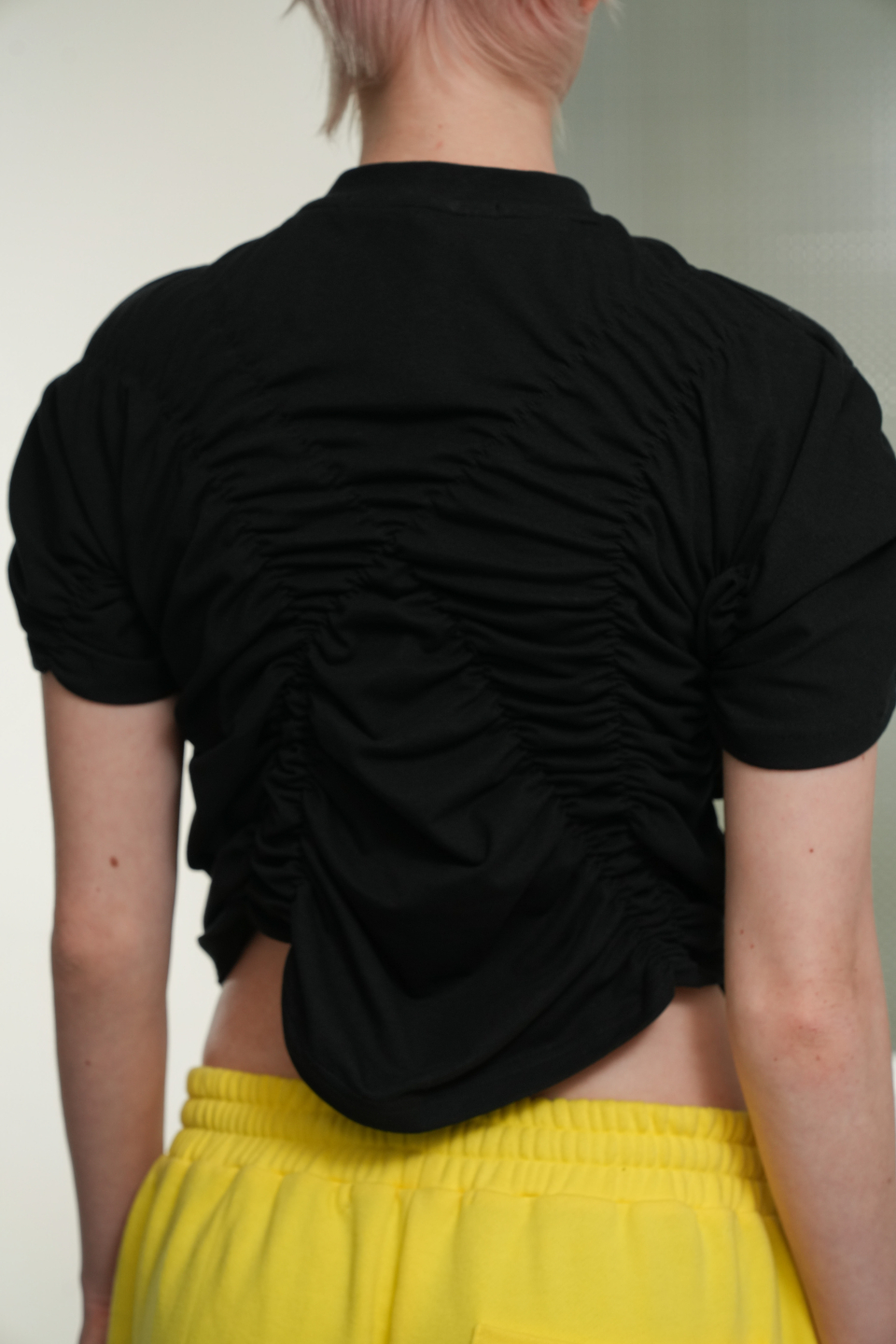 RACING FLAG SHIRRING T-SHIRTS [BLACK]