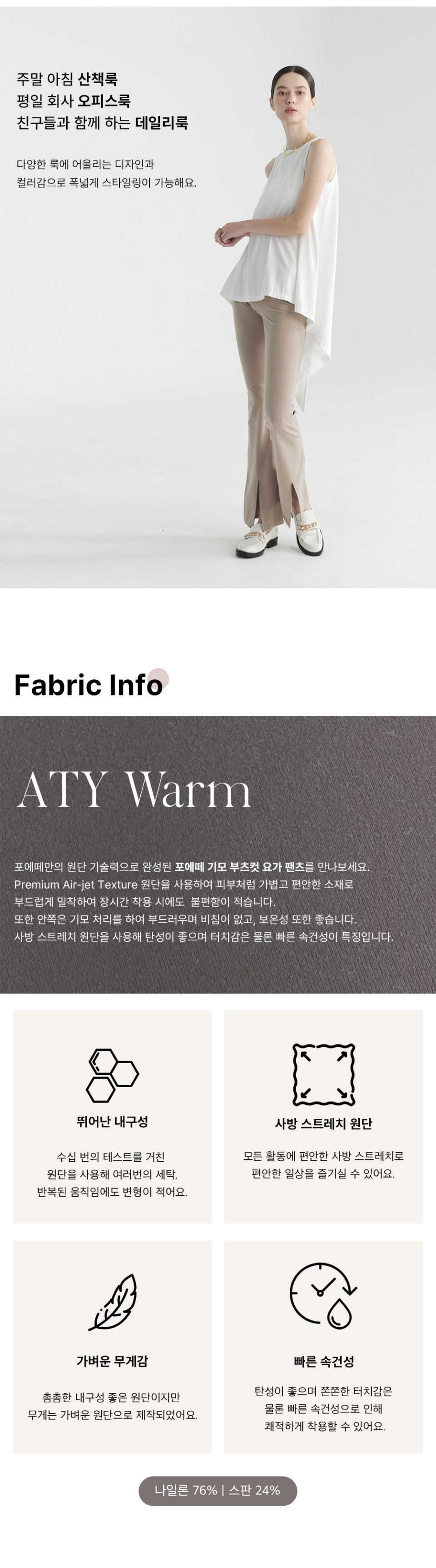 포에떼 기모 부츠컷 요가팬츠 - 베이지