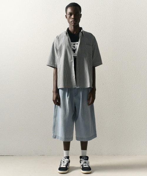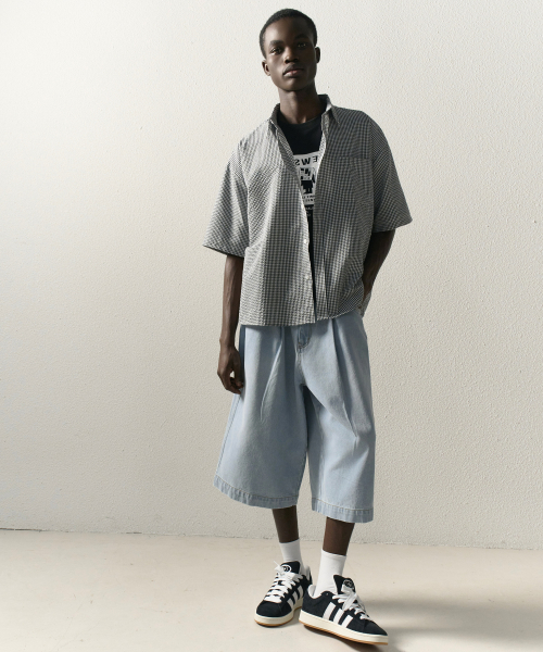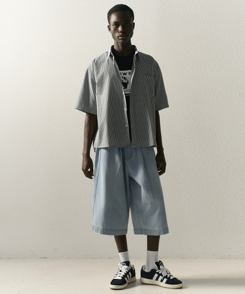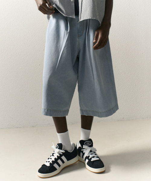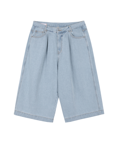 자이언트핏 8부 워시드 데님팬츠 (라이트블루)
