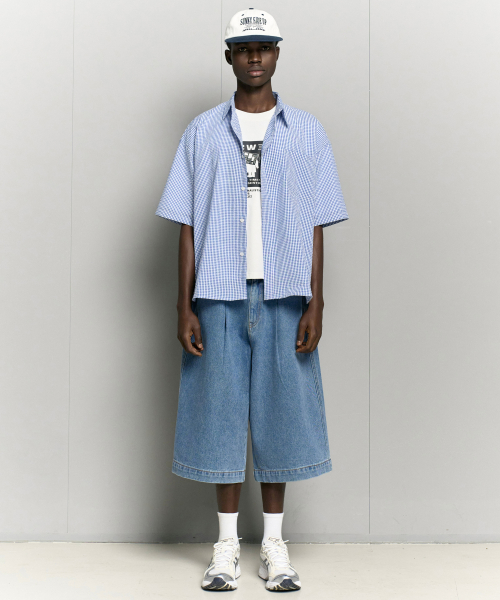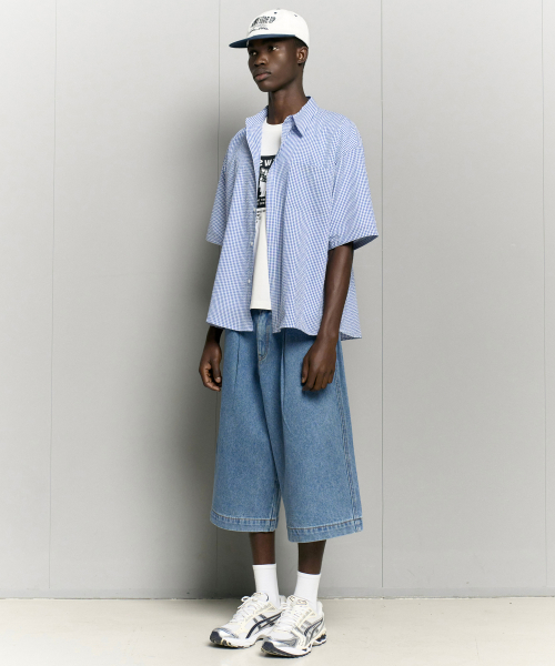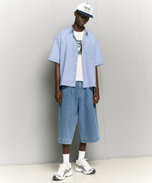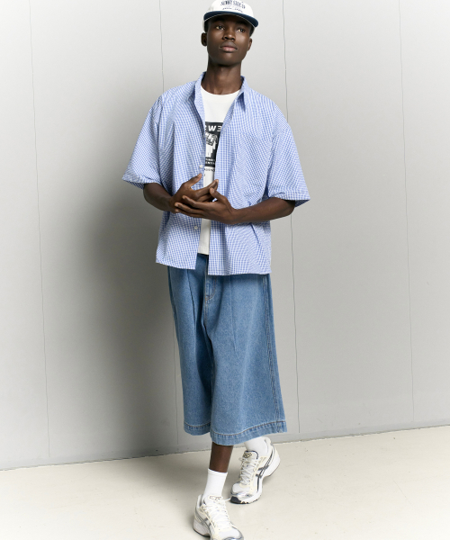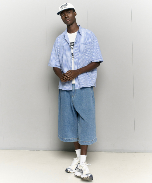 자이언트핏 8부 워시드 데님팬츠 (미디움블루)