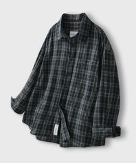 레트로 오버핏 코튼 플란넬 포켓 체크 셔츠 [그린]
