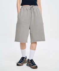 러프컷 피그먼트 워싱 버뮤다 팬츠 - 그레이