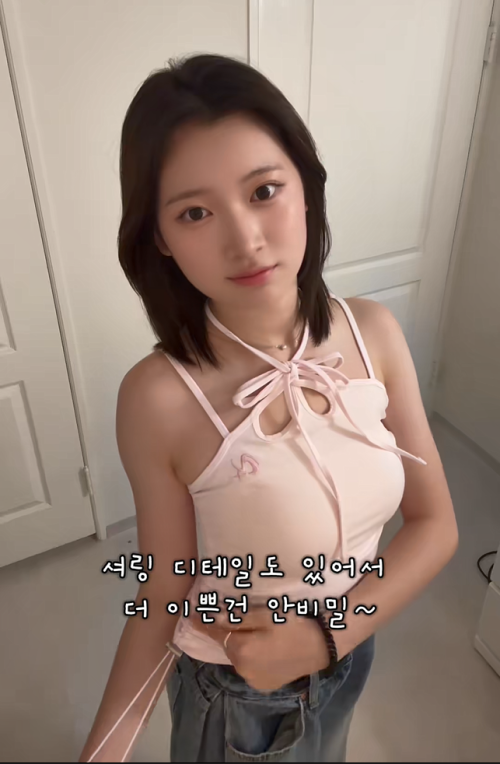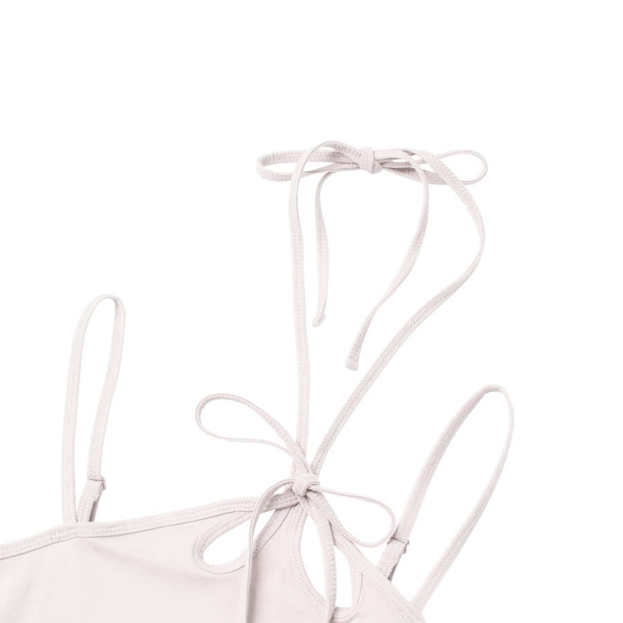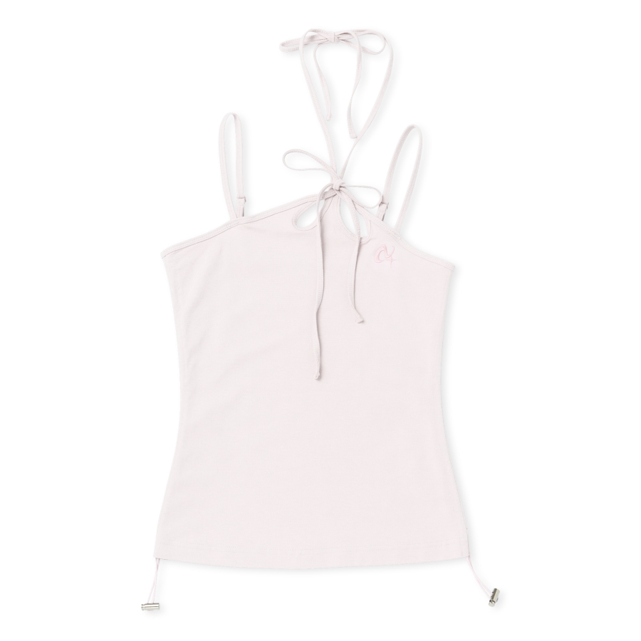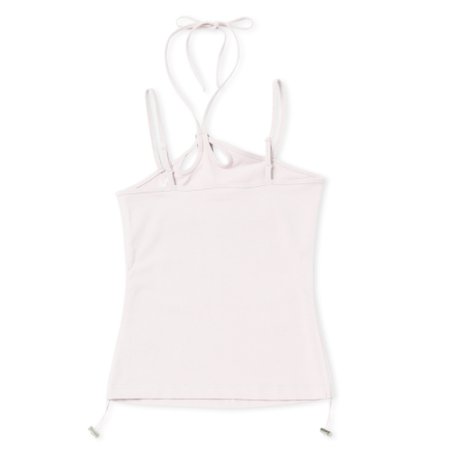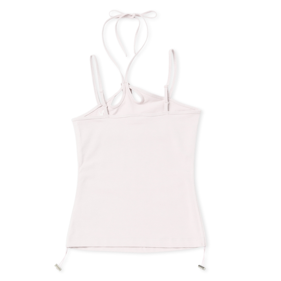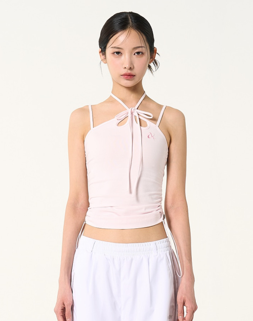 우먼스 스트링 홀터 넥 슬리브리스 탑 베이비핑크