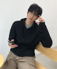 크롭 핑거홀 골지 후드집업_BLACK