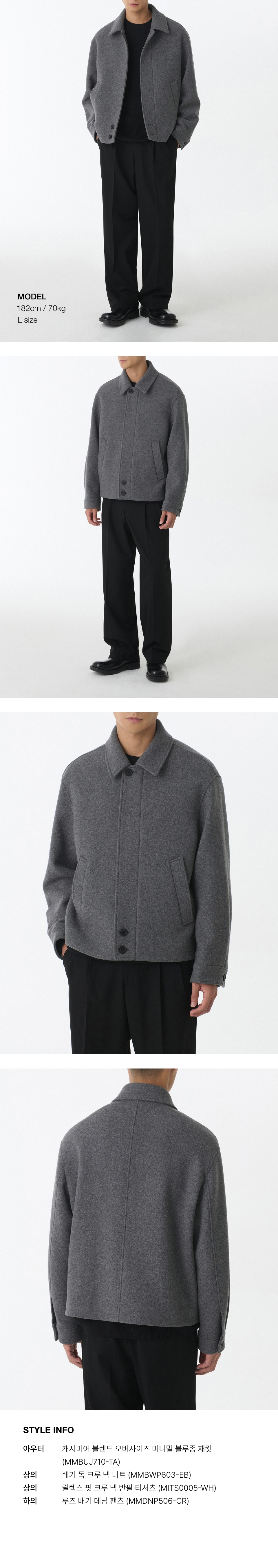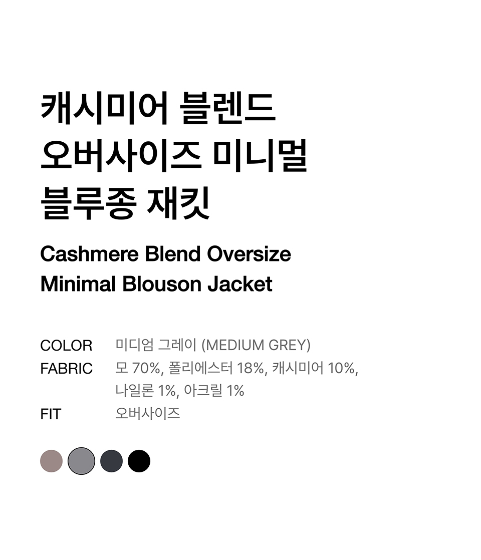 캐시미어 블렌드 오버사이즈 미니멀 블루종 재킷 [미디엄 그레이]