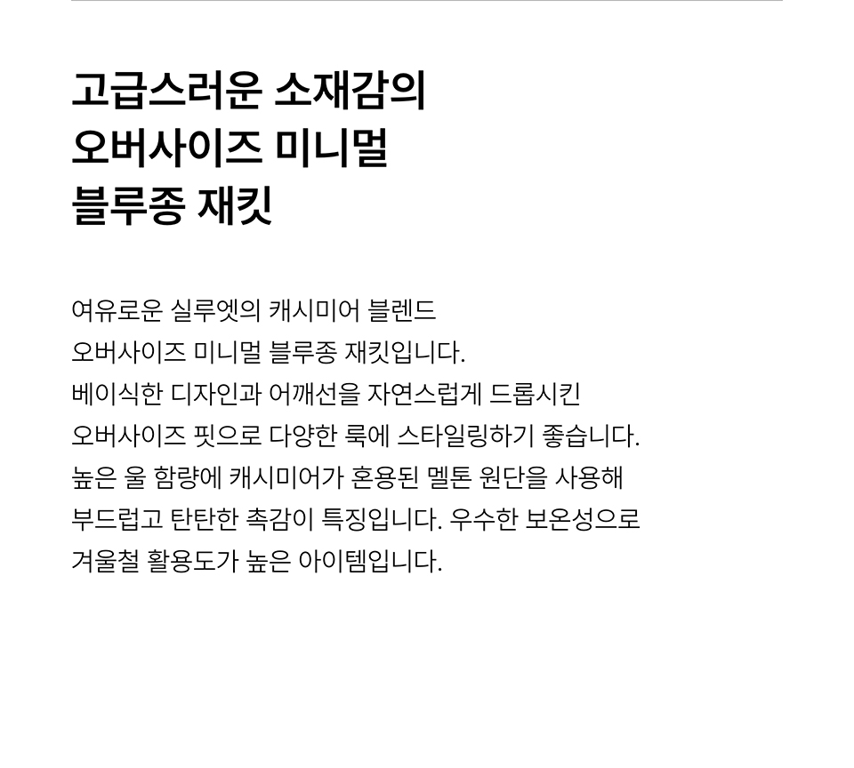 캐시미어 블렌드 오버사이즈 미니멀 블루종 재킷 [토프]